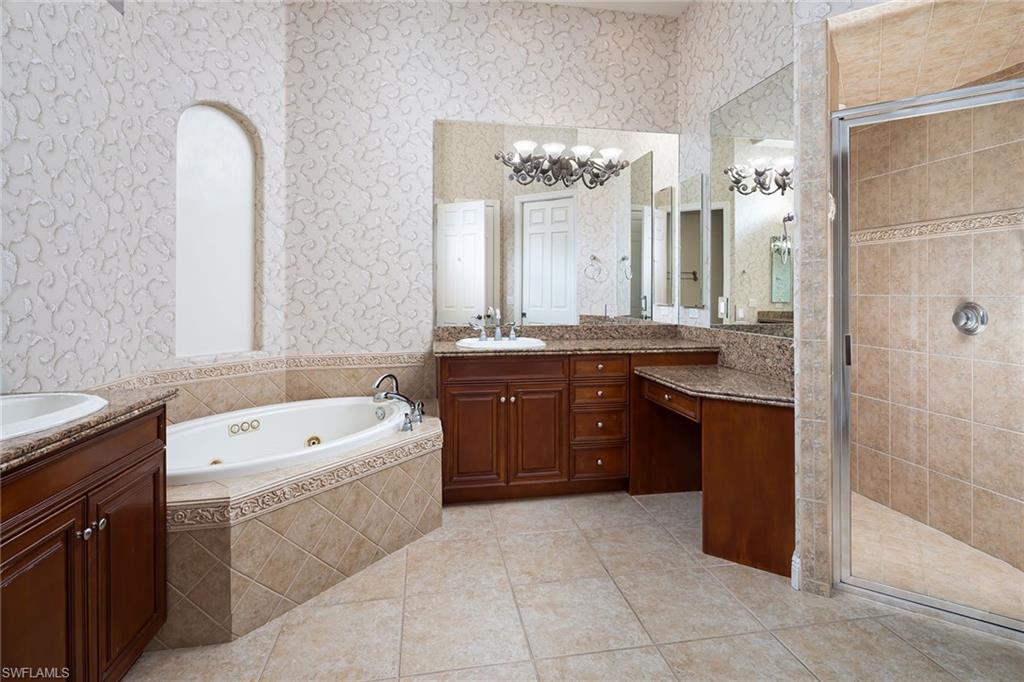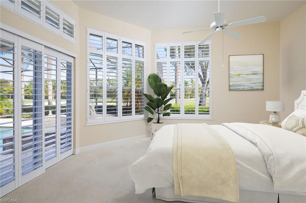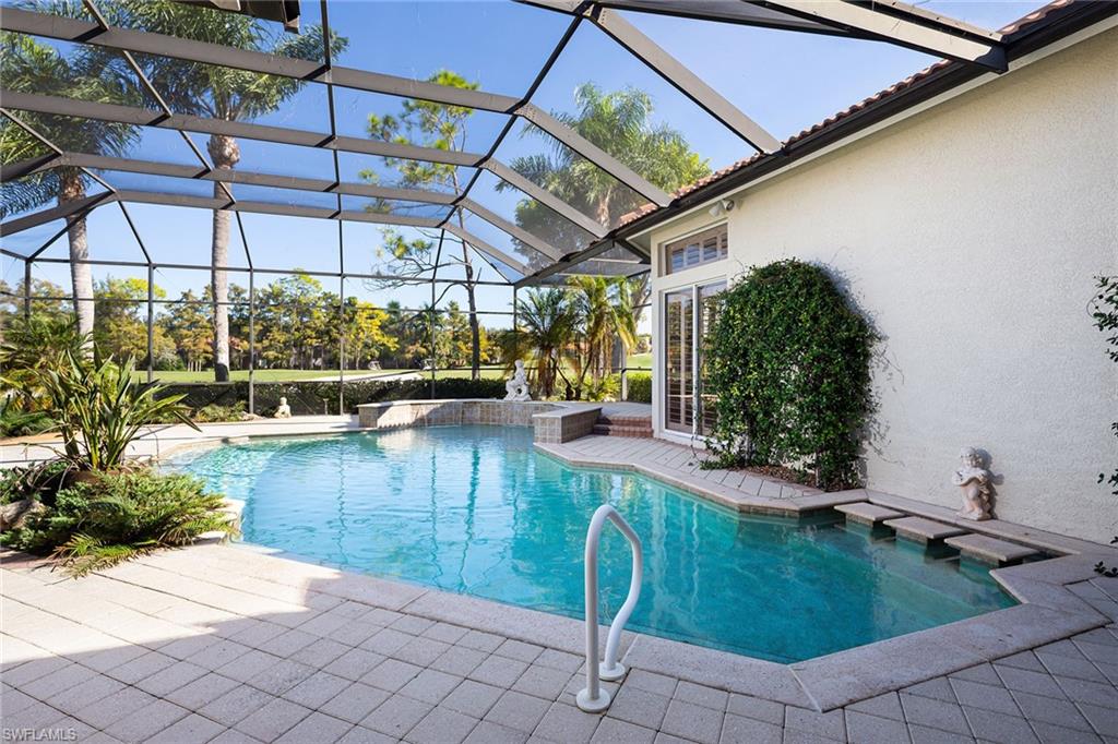 Scenic golf course and lake setting with no homes in view from this spacious 2,800-square-foot home offering three bedrooms, private study and three full baths. Features include soaring 12-14-foot ceilings, 9-foot sliders, solid core wood 8-foot doors, gas fireplace, plantation shutters, hurricane shutters and new roof in 2021. Enjoy having your golf cart for easy access from the oversize garage with a dedicated separate golf cart garage entrance. The lanai has deep covered area with 12-foot ceilings and large uncovered area for taking in the sun poolside from oversized pool with sun shelf and waterfalls. Spacious main suite with golf views and two walk-in closets. Open kitchen to the family room is ideal for gathering area with center island, gas cooktop, walk-in pantry and ample cabinet space. Photography includes virtually rendered furnishings. Olde Cypress is a sought-after active Country Club community with no condominiums where you can enjoy a warm, welcoming atmosphere, a lively year-round calendar of events, championship golf, tennis, pickleball and a state-of-the-art fitness center.
