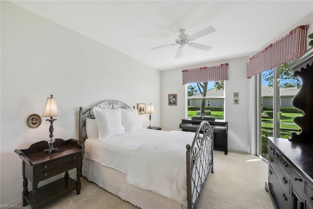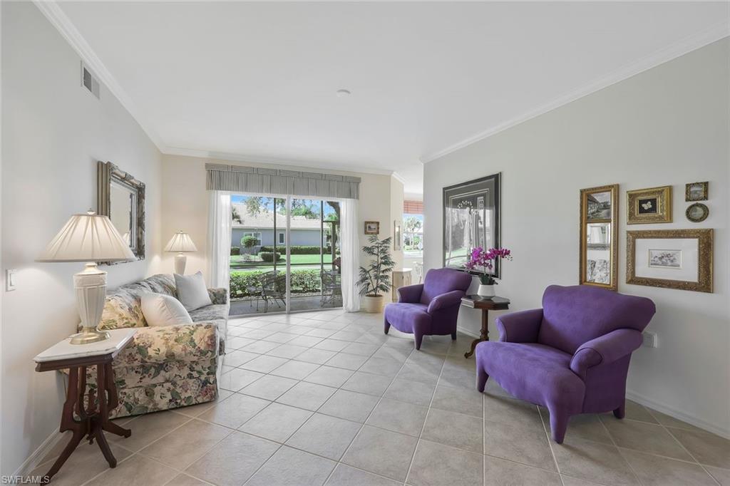 This wonderful 1st floor coach home with attached 2-car garage offers a fantastic lifestyle for year round, seasonal, or vacation living in the popular north Naples bundled golf community of Cypress Woods. Golf membership is included. Grand Cypress Drive, a gated neighborhood with its own swimming pool, provides a beautiful, peaceful, and low density streetscape with a golf course to the rear. The 1,763 square foot coach home has lovely updated bathrooms, great entertaining space, a neutral color palate, and is ideally situated within Cypress Woods at a point furthest from I-75. Cypress Woods, known for its camaraderie, relaxed lifestyle, and continuity of club management, staff, and chefs, offers a very beautiful clubhouse, bar and grille, indoor and outdoor dining, golf course and range, pro shop, pickleball, tennis, and bocce courts, club meeting rooms, fitness center, resort-style and lap pools, spa, walking paths, and organized social activities. Television and internet services in the home are included in the HOA fees. For those looking for a real estate investment, the coach home may be rented out up to 12 times annually for minimum periods of 30 days. Cypress Woods is easily accessible to beaches, dining, downtown Naples, Mercato, Waterside Shops, Venetian Village, Artis Naples, and RSW airport. Noteworthy bonus - the owner has fully paid the $3,800 special assessment for the 2026 clubhouse kitchen improvement project.