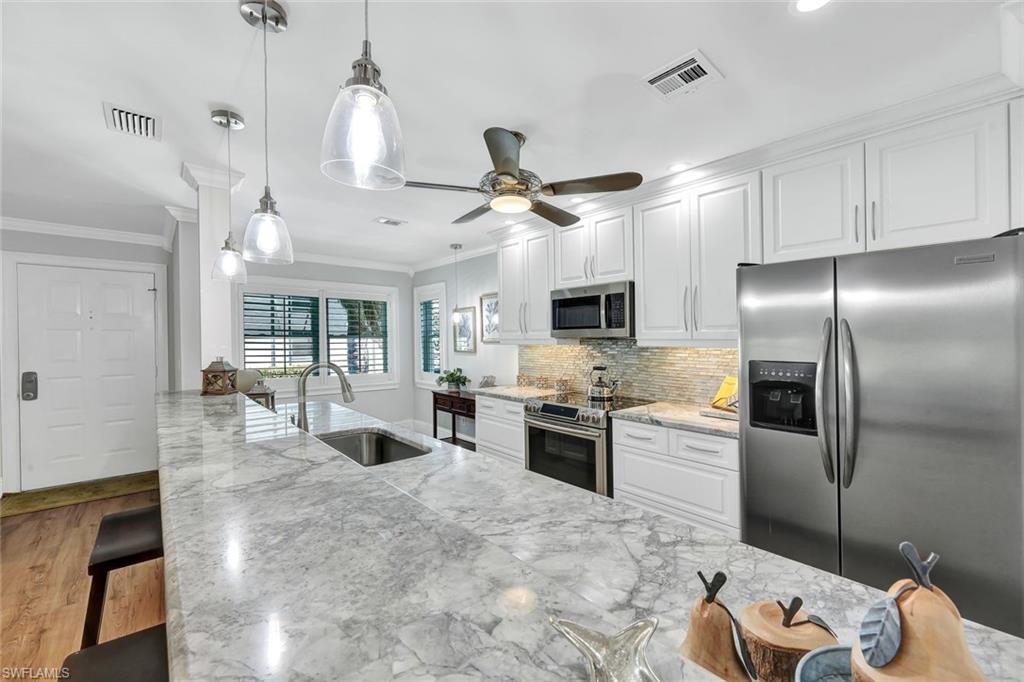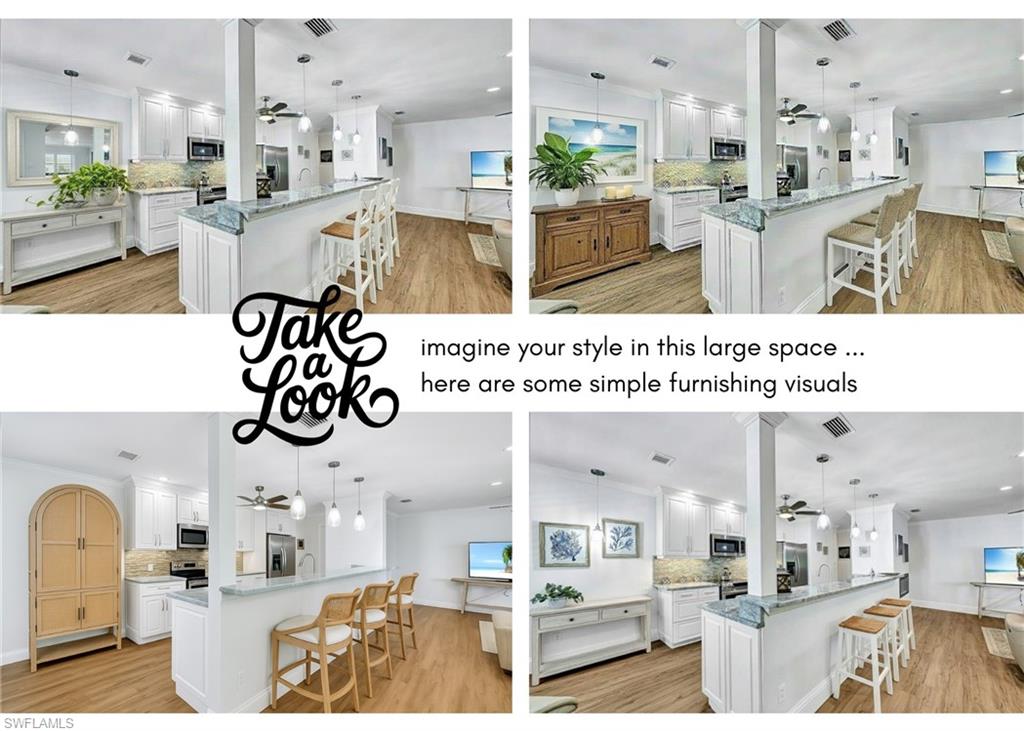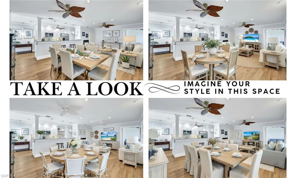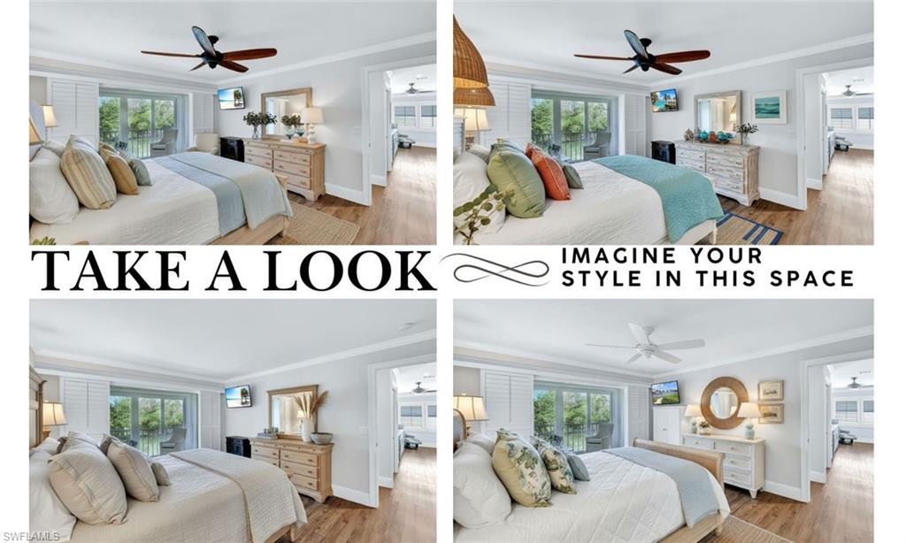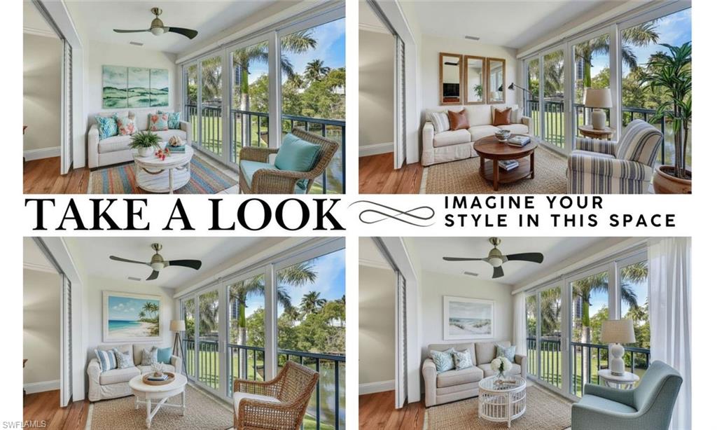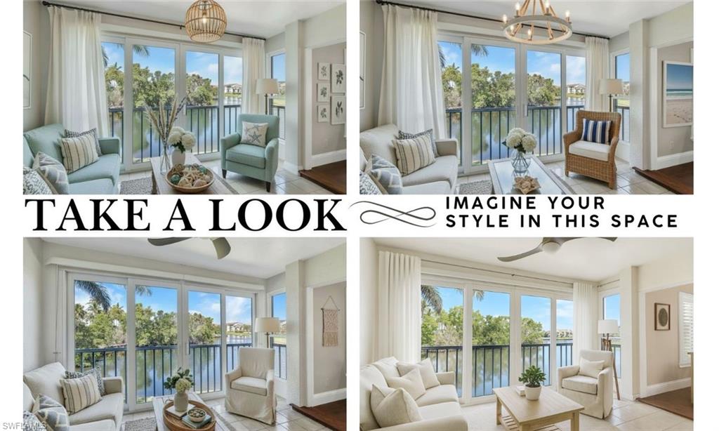 THE VIEW! THE VIEW! THE VIEW! (AND IF THAT'S NOT ENOUGH - ALL IMPACT GLASS AND MEMBERSHIP BENEFITS WITH THIS OWNERS TARPON MEMBERSHIP IS EXTRA DELIGHTER). Prepare to be captivated by the spectacular long lake views from this beautifully renovated second-floor condo in Harbourside at Wiggins Bay - where tranquility meets coastal sophistication. Perfectly positioned just moments from the Gulf, this residence combines stylish updates with a smart, open layout designed for effortless Florida living. Step inside and you’ll immediately notice the wide-plank Cortec wood-style flooring that flows seamlessly throughout, blending warmth and durability with easy maintenance. The chef-inspired kitchen shines with modern cabinetry, upscale counters, and premium stainless-steel appliances, making everyday living both functional and elegant. Both bathrooms have been thoughtfully redesigned with contemporary finishes, tile-and-glass showers, and sleek fixtures, creating a spa-like retreat. The spacious bedrooms feature walk-in closets with custom organizers, while plantation shutters, crown molding, and hurricane-impact windows add an elevated touch of quality and comfort. Enjoy year-round serenity from the enclosed lanai, which extends the living area and frames the stunning water views — or from the screened front entry lanai, ideal for enjoying Naples’ gentle breezes in any season. Additional upgrades include a newer AC system, tankless water heater, newer washer/dryer, and a remote-control electric fireplace, ensuring both convenience and ambiance. Just steps away is the Tarpon Cove Yacht & Racquet Club, where members enjoy a full suite of amenities: tennis, bocce, dining, social events, and even a boat shuttle to the beach. A new private golf club, Kinsale Golf Club, is also being developed right across the street, further enhancing the lifestyle appeal of this premier location. Set near the turquoise waters of the Gulf of Mexico, Wiggins Bay was designed for those seeking the ultimate Florida lifestyle - boating, fishing, beach days, and endless dining and shopping options in both Naples and Bonita Springs are right at your fingertips. Bonus: The seller’s Tarpon Cove Club membership is transferable, allowing buyers to pay only half of the initiation fee ($12,500 instead of $25,000) - a rare and valuable perk. If you’ve been waiting for a beautifully updated home with an unforgettable view and a lifestyle to match, this one is a must-see.