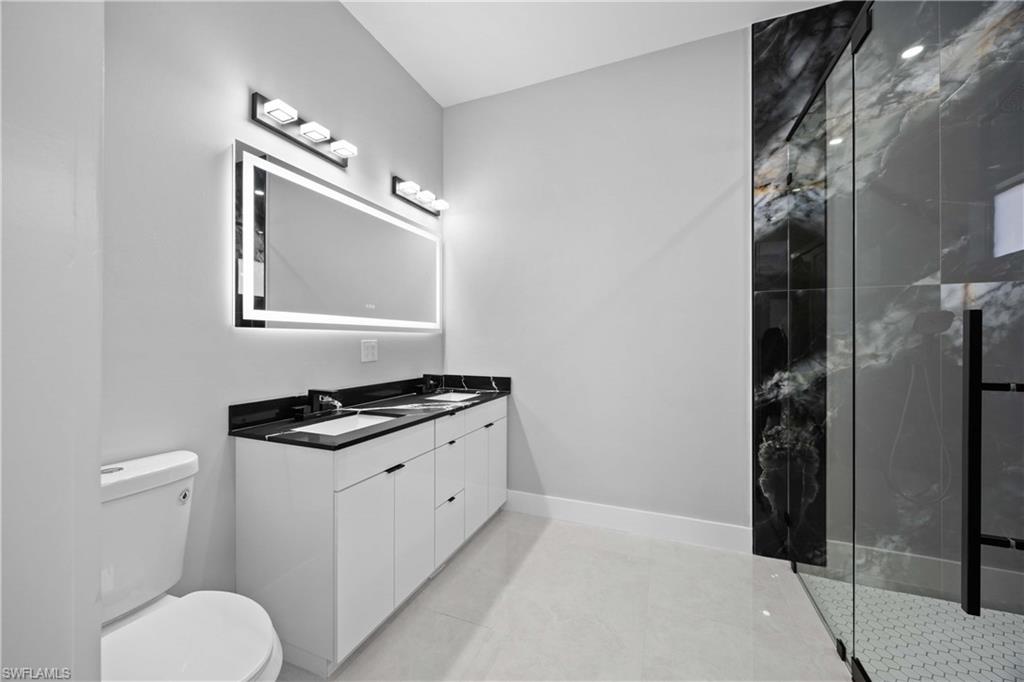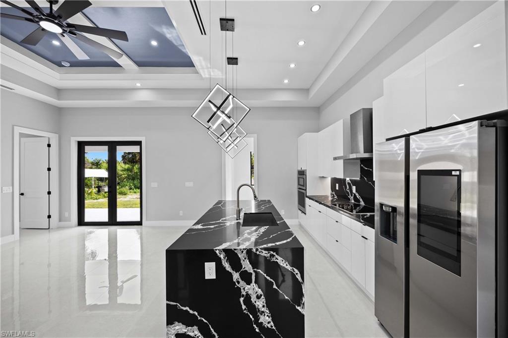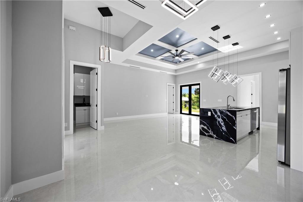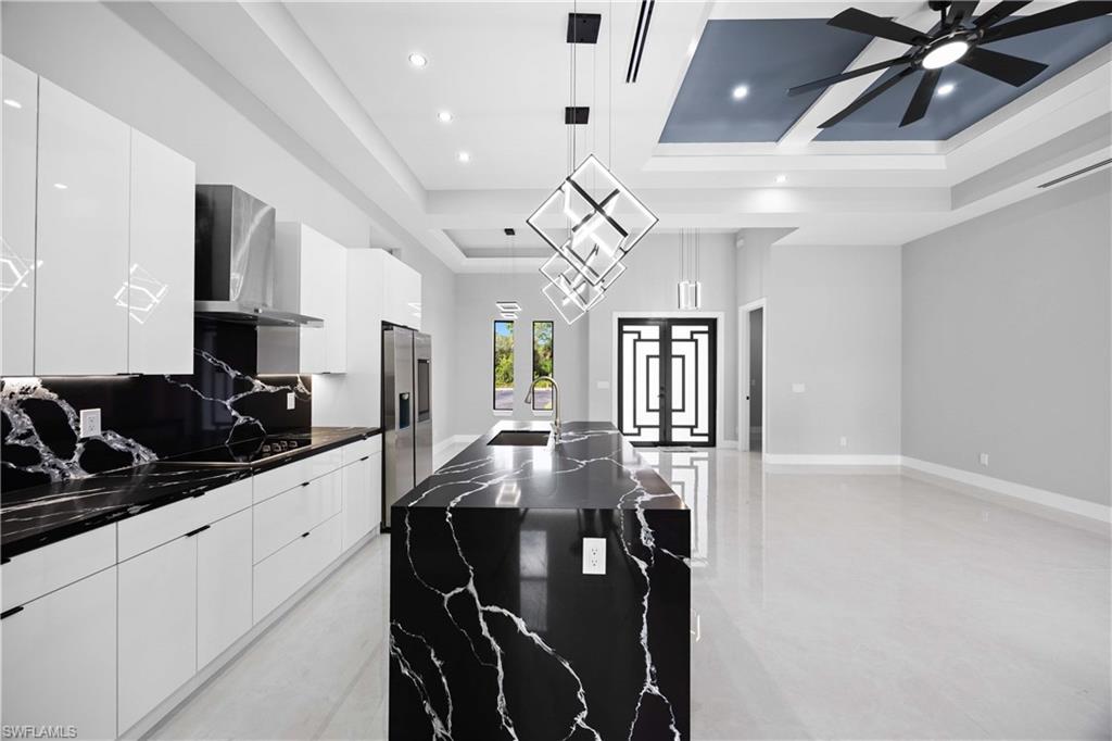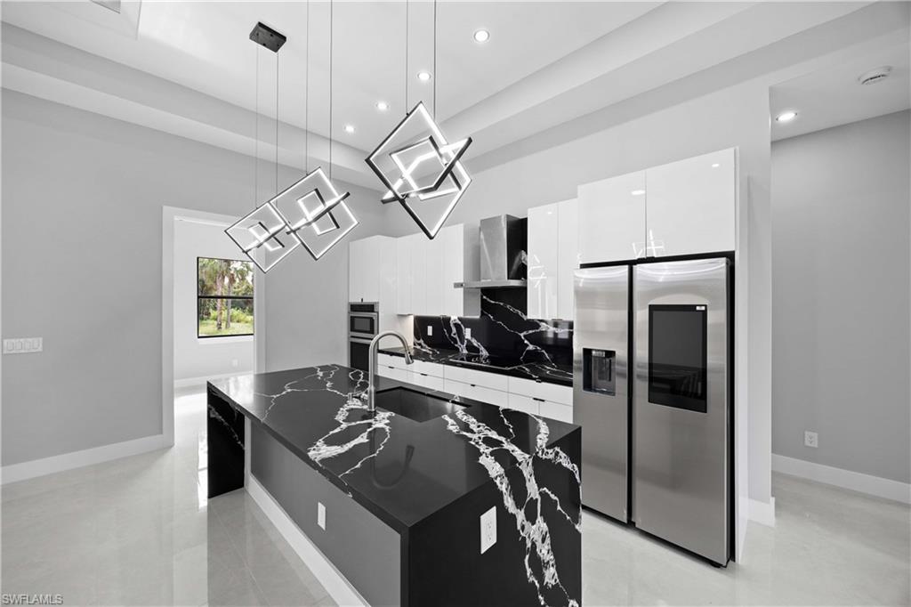 Nestled in the serene Golden Gate Estates, this stunning Stenwood New Construction offers the perfect blend of modern luxury and natural tranquility. This home features a one-of-a-kind design that stands out with its exceptional upgrades and modern finishes, making it truly unique. This home offers a 24' asphalt driveway and a 16' bayrock driveway that runs all the way to the end of the lot. Situated on an expansive 100% DRY LOT, this beautifully designed residence features 4 spacious bedrooms with custom made closets, a versatile den, and 3 elegantly appointed bathrooms. The open-concept layout boasts soaring ceilings with soffit in the master room, living and dinning room, fans thought the home, abundant natural light, and high-end finishes throughout. The gourmet kitchen is a chef's dream, complete with sleek elegant quartz countertops, 42' soft close cabinets with led light underneath, stainless steel appliances, and ample storage. Homes features a Reverse Osmosis Water System, gutters all around the home, sprinkler system, epoxy paint garage, high impact doors and windows as well as interiors and exteriors 8' doors with 6' baseboards, 24x48 porcelain tile and much more. Step outside to your private haven, where there's plenty of space to create your ideal outdoor oasis. With no HOA restrictions, enjoy the freedom to personalize your property to suit your lifestyle. Conveniently located just minutes from Naples' top-rated schools, shopping, dining, and world-class beaches, this home truly has it all. Don't miss the opportunity to own your slice of paradise!