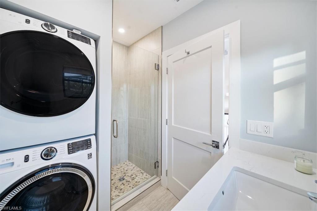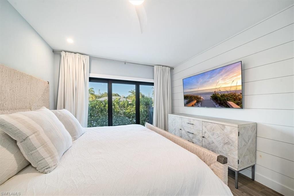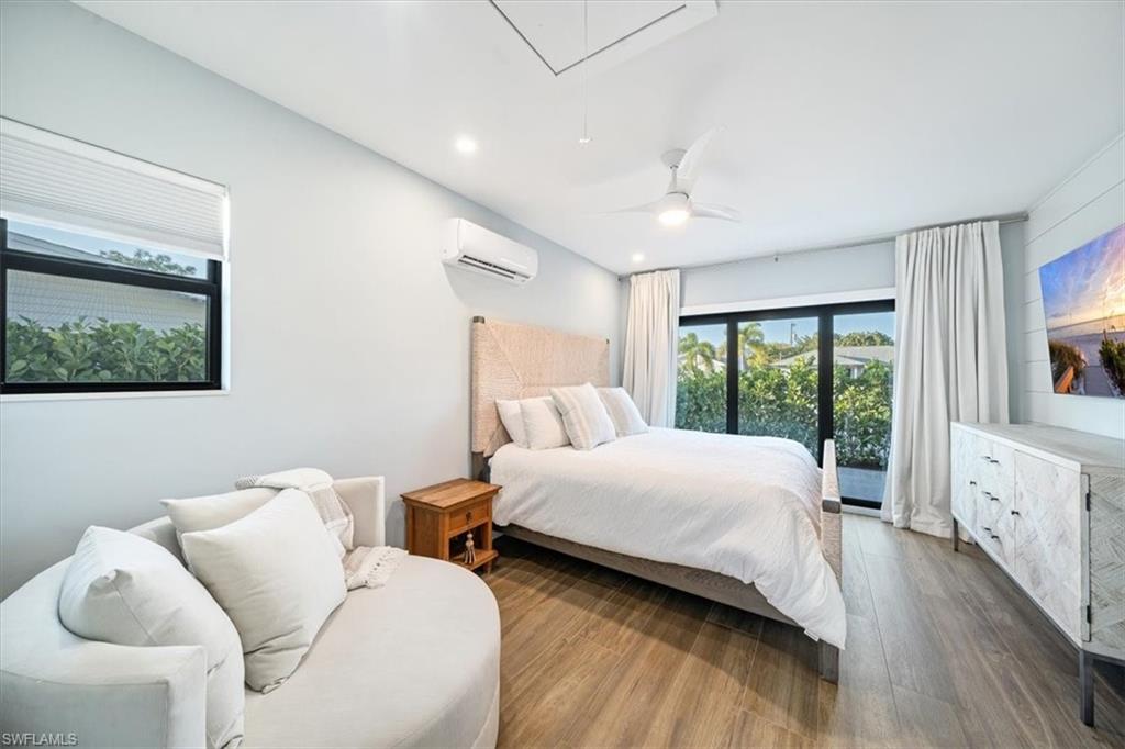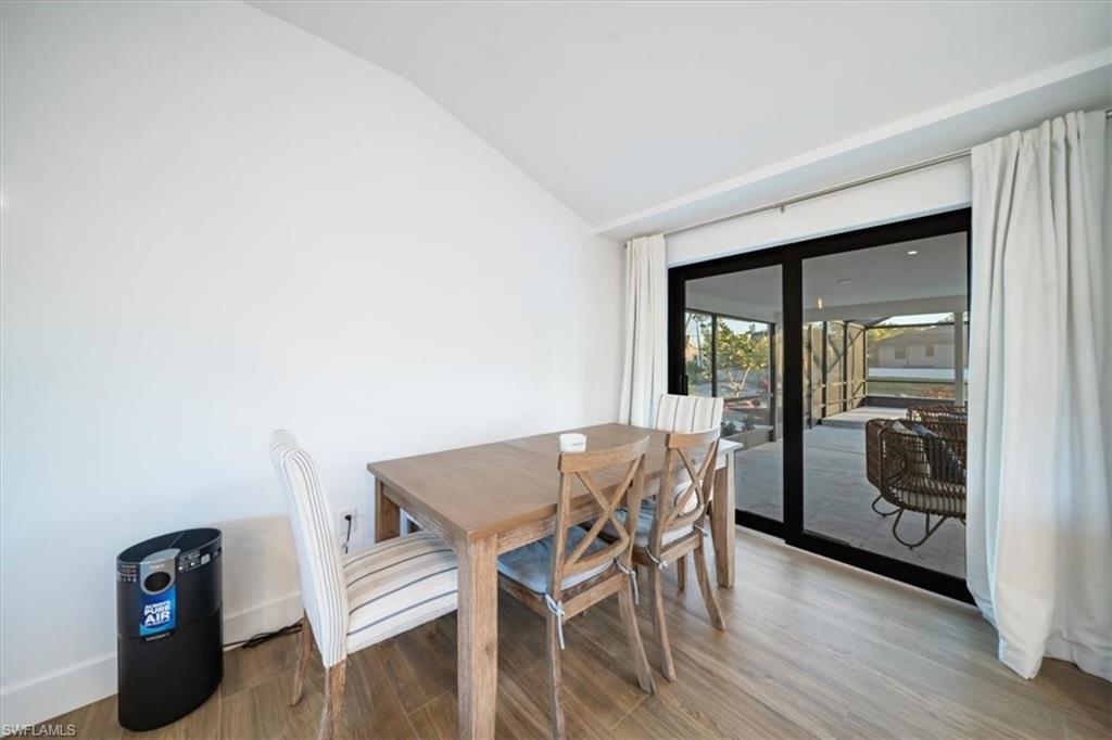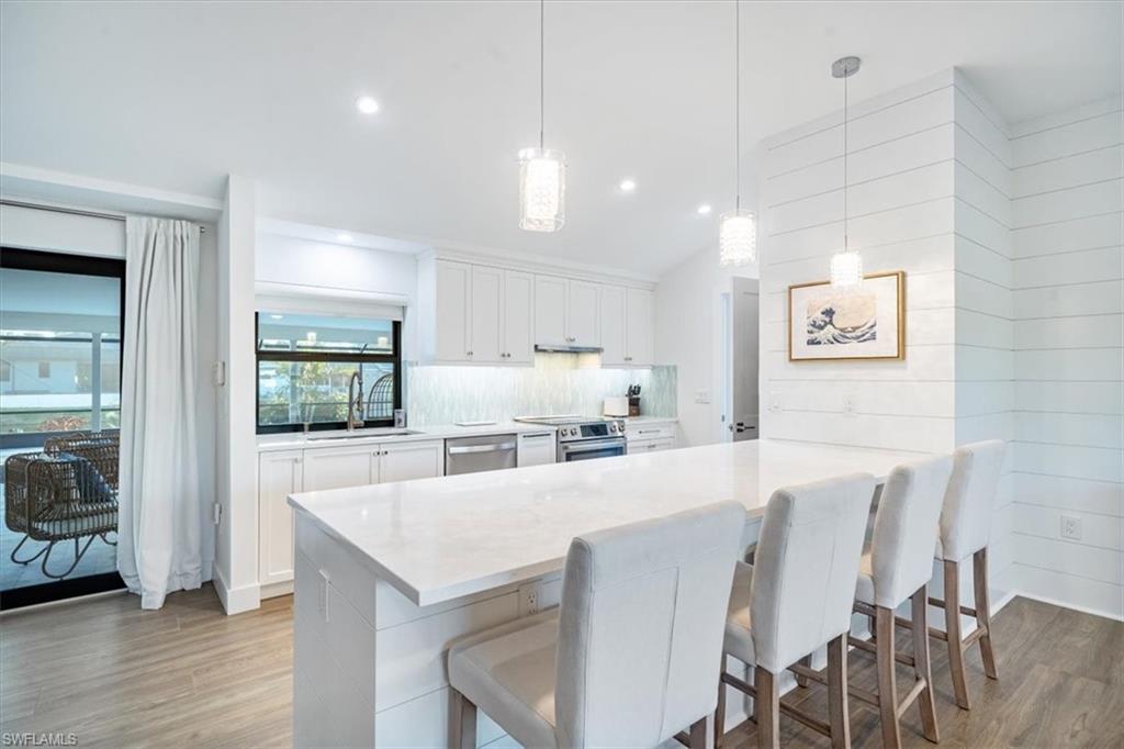 AMAZING RENOVATION & GORGEOUS CURB APPEAL! 1.2 MILES TO THE BEACH!! Noteworthy updates include a new roof in 2023, impact windows and sliders, a tankless water heater installed in 2021, and a 2020 AC unit. 2 fully remodeled baths - main bath is a STEAM SHOWER. The interior showcases a spacious great room with vaulted ceilings and exquisite detailing, complemented by “wood look” tiled flooring. The Shaker-style kitchen, the heart of the home, features an island with quartz countertops and an elegant tiled backsplash. A private guest wing offers its own entrance, a morning kitchen, and a serene patio off the bedroom, ideal for a peaceful retreat. Two additional bedrooms boast vaulted ceilings, ceiling fans, and generous closet space, providing a bright and airy feel. Outdoors, enjoy the Naples lifestyle with a newly renovated pool and spa adorned with mosaic tiles, stone coping, and a paver deck. The screened lanai overlooks the beautifully landscaped yard, creating a serene outdoor haven. A custom-built fire pit invites relaxation while you savor stunning sunsets over the lake from the western-exposure backyard. Additional outdoor features include a shed, LED landscape lighting lushly landscaped. Neighborhood has a community center, boat ramp and perfectly located steps to open waters, boating, kayaking, paddle boarding activities in this northern Collier County community.
