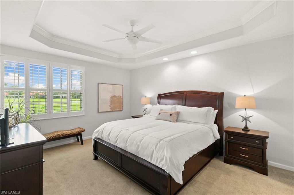Welcome to this light, bright & meticulously maintained first-floor condo in the beautiful Fiddler’s Creek! This stunning 3-bedroom, 2-bath residence offers serene south-facing golf course and water views and an abundance of natural light throughout. The spacious kitchen features an eat-in kitchenette, breakfast bar, adjacent formal dining area, stainless steel GE appliances (2024), chic white cabinetry and a gas range—perfect for both casual and formal dining. The open-concept living area flows seamlessly into the expansive lanai, creating an inviting space for entertaining or relaxing. Retreat to the elegant primary suite which is enhanced by its tray ceiling, crown moulding, and your own private golf course and water views. The plantation shutters, walk-in closet, and dual vanities provide additional charm and comfort. The updated lighting fixtures throughout, newer Maytag washer & dryer, plantation shutters throughout, and a newer HVAC and air handler (2024) offer style and utility to an already gorgeous home. Enjoy the convenience of an attached one-car garage and inviting courtyard entry way. The debt service portion of the CDD IS PAID IN FULL. The award-winning, resort style community of Fiddler's Creek is enhanced by a club and spa, fitness center, swimming pools, two golf courses, tennis courts, pickleball courts, a bocce court, fine and casual dining, social activities, and miles of biking and walking paths. Optional beach club and marina memberships are available. Experience the epitome of luxury living, where every detail is thoughtfully curated to complement your lifestyle.