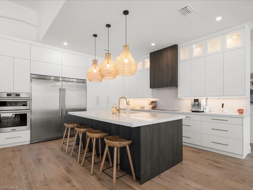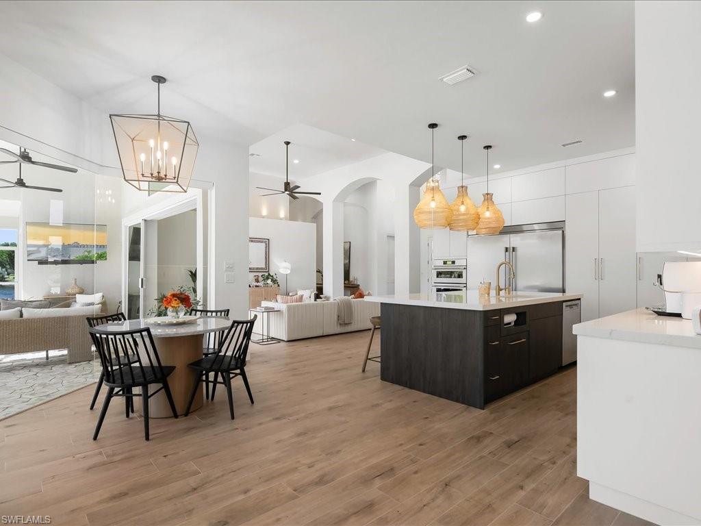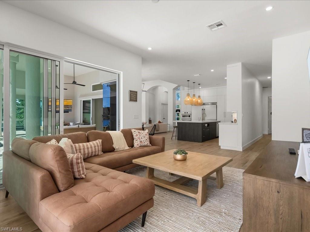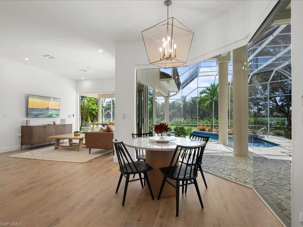 A Modern Lakefront Retreat in Imperial Golf Estates - Step into a world of relaxed sophistication where timeless design meets modern luxury. This beautifully renovated estate home in Imperial Golf Estates offers over 3,400 square feet under air with 4 spacious bedrooms, a dedicated office, and a flowing open-concept layout designed for today’s lifestyle. Every detail has been thoughtfully updated to reflect contemporary elegance — from the sleek wood-plank porcelain tile flooring throughout to the refined finishes and abundant natural light that fills each room. At the heart of the home, the stunning modern kitchen stands as both a showpiece and a gathering place, featuring custom cabinetry with spring-loaded doors, quartz countertops, a large center island that is perfect for casual eating or entertaining, and stainless steel appliances that make entertaining effortless. The adjoining living and dining spaces open seamlessly to the outdoors through expansive hurricane impact sliding glass doors, creating a natural connection between indoor comfort and outdoor beauty. The master suite is a private retreat, offering serene lake views, direct lanai access, and a spa-inspired bath complete with dual vanities, a soaking tub, and a huge walk-in shower. Each guest room is generously sized, providing comfort and privacy for family or visitors. The laundry room has lots of cabinets for extra storage, a sink and even a pet washing station. Outside, the expansive screened lanai showcases Naples living at its best — a huge custom pool with spillover spa, surrounded by ample space for lounging, dining, and soaking up the sun. The sought-after southwestern exposure ensures the lanai and pool are bathed in warm afternoon light and deliver unforgettable sunset views over the shimmering lake. Tucked within the prestigious gated community of Imperial Golf Estates, this residence offers the perfect balance of tranquility and convenience — just minutes from Naples’ world-class beaches, dining, shopping, and golf. Whether you’re seeking a full-time home or a seasonal retreat, this property captures the essence of the coveted Naples lifestyle: elegant, effortless, and endlessly inviting. Furnishings are negotiable, and a list of extensive upgrades the home offers is available upon request. Please click on virtual tour for 20+ additional photos and floor plan.