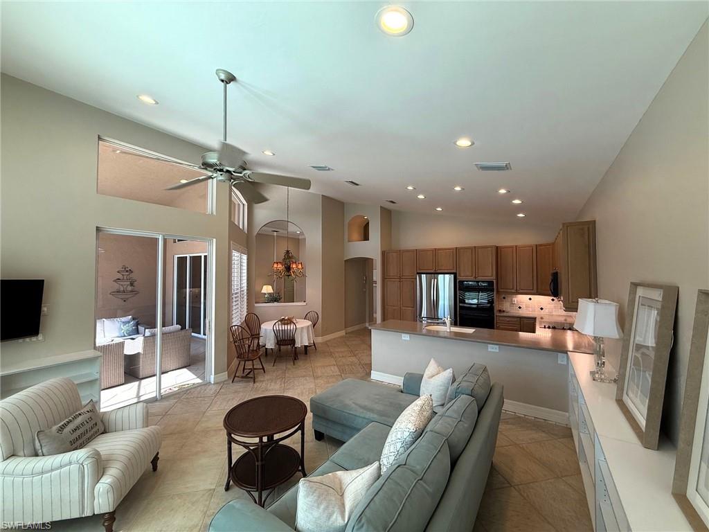 Immaculate Pearl Floor Plan in Saturnia Lakes – Designer Upgrades, Southern Exposure, Move-In Ready! Welcome to this rarely available Pearl model in the highly sought-after, gated community of Saturnia Lakes in Naples, Florida. Meticulously maintained and professionally designed, this 4-bedroom, 2.5-bathroom single-family home offers over 2,678 square feet of elegant living space with premium upgrades throughout including Impact windows. From the moment you arrive, you’ll appreciate the extra-wide paver walkway, curved entry step, and double front doors with impact-resistant glass inserts, perfectly complementing the home's architectural details. ? Interior Features & Designer Finishes 20" diagonal porcelain tile throughout main living areas Upgraded carpet in the spacious primary suite with private sitting area Luxury vinyl or wood-look floors in guest bedrooms Chef-inspired kitchen with deluxe cabinetry, stainless appliances, and oversized pantry Elegant bathrooms with upgraded cabinets and designer fixtures Custom closets, window film, plantation shutters, and motorized blinds Wall finishes and textures curated by a professional interior designer Garage-Tek custom garage storage system included ?? Outdoor Living & Security Resort-style pool with screened lanai Motorized storm shutters around the covered lanai for quick protection Southern rear exposure offers natural light all day Professionally landscaped with tropical curb appeal ?? Community & Location Saturnia Lakes is a gated, amenity-rich community offering a clubhouse, fitness center, resort pool, tennis, and more—all just minutes from dining, shopping, top-rated schools, and Gulf beaches. ?? Don’t Miss This Opportunity This move-in-ready home with luxury upgrades and a high-demand southern exposure lot won’t last long. Perfect for full-time residents or seasonal buyers looking for security, style, and comfort.