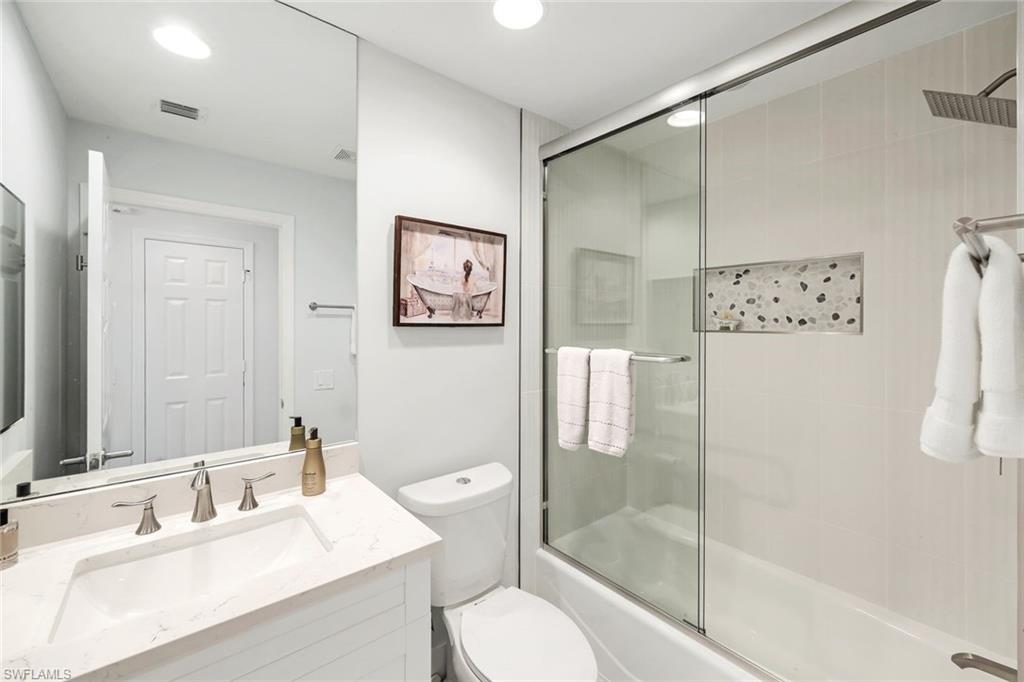 Welcome to Caribe at Cove Towers! A gated luxury high-rise community perfectly positioned along the tranquil Wiggins Bay in North Naples. This recently renovated 3-bedroom, 2-bath residence blends timeless style with modern comfort, featuring a spacious open-concept layout. Features include new, wood-like plank tile flooring, tray ceilings, recessed lighting, and upgraded electrical and plumbing fixtures throughout. The newly renovated kitchen is designed for both beauty and function, showcasing brand-new quartz countertops, brand-new stainless-steel GE built-in wall microwave & oven, new LG refrigerator & dishwasher, and a brand-new, sleek induction cooktop & hood. The utilities room includes brand-new LG, ThinQ Washer & Dryer. The primary bedroom has new custom closets by Closets by Design. Enjoy peace of mind with impact-resistant windows and electric storm shutters, along with garage parking and a private storage locker. Cove Towers is located in North Naples just minutes from Mercato, Waterside Shops, & The Pavilion. Residents at Cove Towers enjoy access to resort-style amenities, including a community pool, clubhouse, fitness center, tennis courts, EV charging, marina access, on-site dining, and private beach access. Optional Tarpon Cove Club membership provides even more opportunities to embrace the Naples lifestyle — with a private boat shuttle to the beach, social activities, and waterfront dining. Come experience the perfect blend of luxury, comfort, and coastal charm at Caribe in Cove Towers — your slice of paradise in Naples awaits!