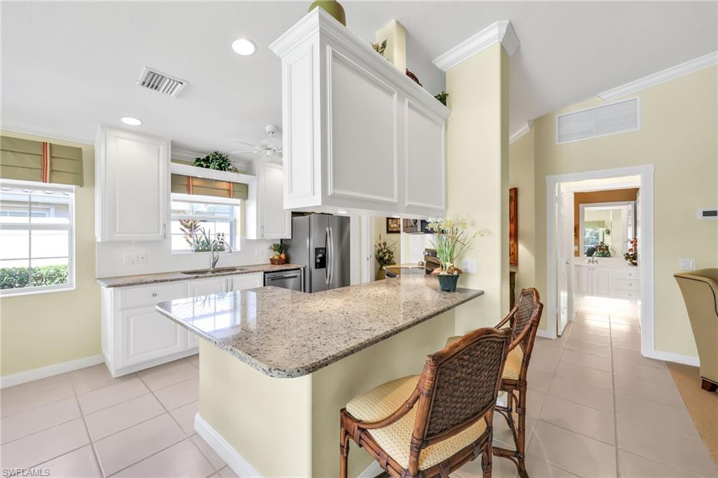 PRECISION PERFECT PIECE OF PARADISE ! CAPRI "Built Solid " FUN IN THE SUN ALL DAY with this Southern Exposure Heated Pool with a Big Lake View also Skip to the Pickleball courts , GREAT LOCATION!!! ORIGINAL OWNER ! Meticulously maintained. NEW ROOF with Custom Gutter's , Accordion shutters for added hurricane protection, CUSTOM crown molding, Granite kitchen with upgraded stainless steel appliances, Plantation Shutters , custom shades and screens. DONT'T FORGET THE STANDARD FEATURES THAT CAME WITH A REAL DIVOSTA HOME; Poured concrete walls, Smooth coat walls inside through-out the home, finished closets systems, 6 ft privacy wall Between your neighbor, central vac, insulated garage door. Verona Walk offers 24 hr. guarded gated entry, lighted tennis, bocce ball, basketball and pickle ball courts, resort-size community Lagoon pool, lap pool, tot lot, over 20 miles trails, 24/7 gym, post office, café/restaurant, ice cream Shoppe, hair salon, car wash, gas station, library, computer center, ballroom, card rooms, and a full-time activities director. Convenient to both Naples and Marco Island beaches, shops and fine dining, regional hospital and Edison college nearby. The low HOA dues also include lawn care & irrigation, basic cable TV