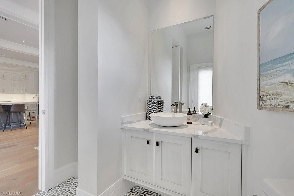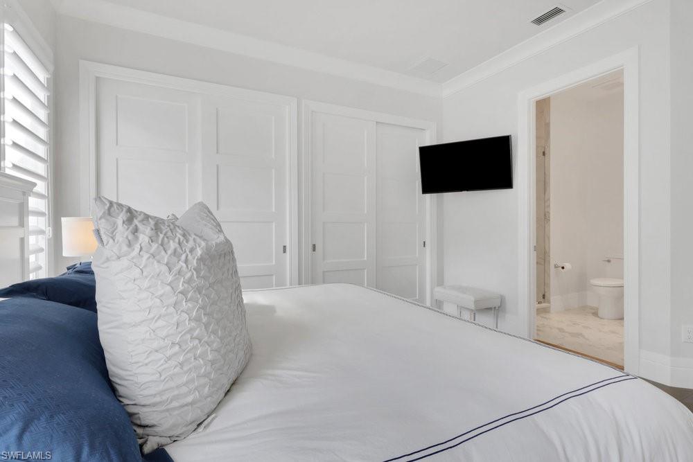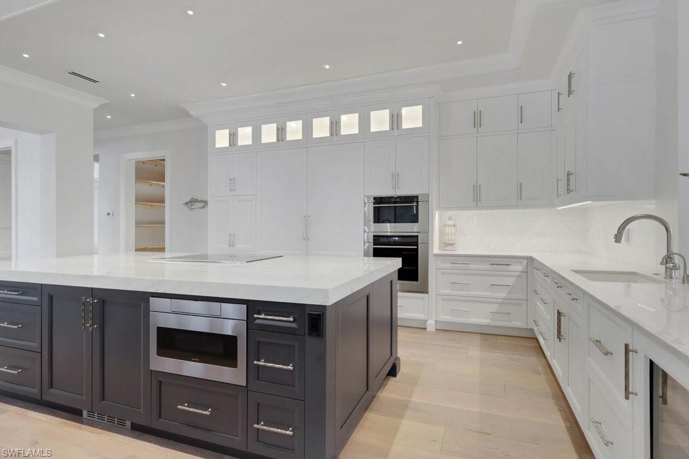 Experience elevated coastal living in this stunning Pelican Bay estate situated on a quiet cul-de-sac lot, featuring a three - car garage, where timeless elegance meets modern sophistication. This impeccably designed home showcases a culinary masterpiece kitchen with dual oversized quartzite islands that define the heart of the home, a built-in drawer microwave, butler’s pantry, and top-of-the-line Wolf / Sub Zero appliances, stove complemented by a pop-up downdraft ventilation system. The gourmet space also features double convection and steam ovens, wine bottle refrigerator, and two sinks with one that has a premium water filtration system—crafted for both the passionate chef and the gracious entertainer. Warmth and ambiance abound with two gas fireplaces located in the elegant living room and cozy den, each creating the perfect setting for intimate gatherings or relaxed evenings. Beautiful Shoreline Oak wood throughout the whole house, A Generac whole-house propane generator, discreetly installed underground, ensures peace of mind and uninterrupted comfort. The residence underwent a complete interior remodel in 2019, including a new roof, while maintaining its original windows, pool, jacuzzi, and lanai, preserving a touch of classic Naples charm. Every detail of this home exudes sophistication—from the seamless integration of modern appliances to the thoughtful custom cabinetry. This is luxury living reimagined, nestled in the prestigious Pelican Bay community—where world-class amenities, pristine beaches, and refined Naples lifestyle converge. Residents of Pelican Bay enjoy an unmatched resort lifestyle with access to two private beachfront clubs offering oceanfront dining, beach service, and sunset lounges. The Pelican Bay Clubhouse features state-of-the-art fitness and wellness centers, world-class tennis facilities, a 27- hole championship golf course ( membership optional) and social events designed for an active, sophisticated lifestyle. Miles of scenic walking and biking trails, along with kayaking through the mangroves, and is ideally located near Waterside Shops & Mercato, Artis-Naples, complete this exclusive coastal experience — all within one of Naples’ most prestigious communities. Master bedroom is virtually staged.