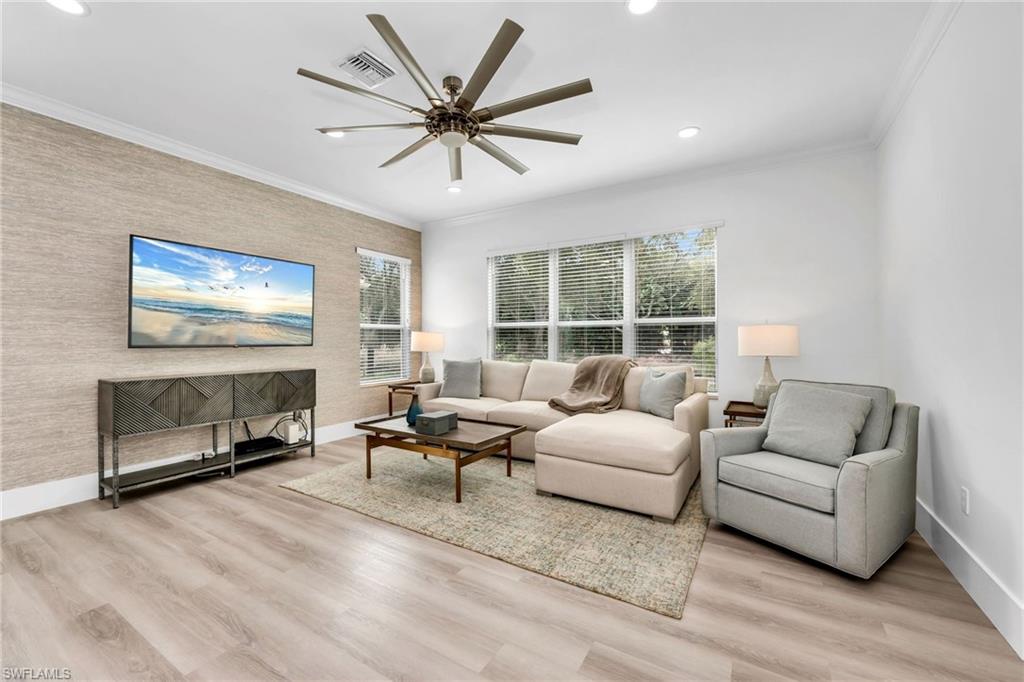 Welcome to this beautifully crafted 5-bedroom + den, 4-bath home in one of Naples’ most sought-after communities, Marbella Lakes. Built in 2010, this residence blends thoughtful design, modern updates, and everyday livability in an inviting, family-friendly layout. Step inside to a bright and open main level, refreshed with wide-plank wood-look Cortec flooring that carries throughout the living spaces with both style and durability in mind. The first floor offers exceptional flexibility, featuring a private guest bedroom, full bathroom, and a dedicated home office—perfect for visitors, remote work, or additional living space. At the heart of the home, the kitchen is a standout transformation fueling both form and function. Anchored by a stunning quartz waterfall island, elevated by sleek shaker cabinetry, and re-envisioned for effortless flow, this space is designed for gathering, entertaining, and day-to-day enjoyment. Upstairs, rich Brazilian walnut flooring leads to a thoughtfully designed second floor where the primary suite and additional bedrooms are all together—an ideal arrangement for keeping loved ones close. The oversized primary retreat offers a serene escape with generous proportions and a layout that inspires comfort and relaxation. Outside of the home, Marbella Lakes delivers a true lifestyle community, complete with resort-style amenities, social spaces, and access to top-rated schools, making it the perfect place to truly live, play, and thrive.