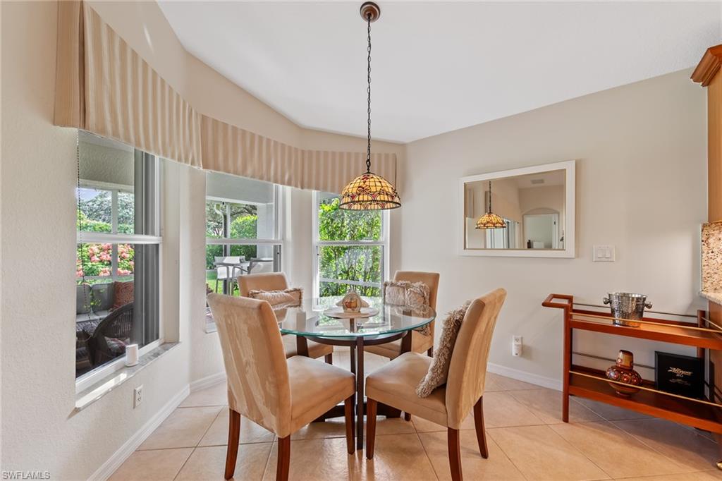 Experience the perfect blend of comfort, style, and convenience in this beautifully maintained single-story residence nestled within one of Southwest Florida’s most desirable communities. Designed with vaulted ceilings and an open-concept floor plan, this home offers a bright and spacious layout that seamlessly connects the main living areas—ideal for entertaining or relaxing in effortless comfort. The kitchen features newer stainless-steel appliances, including a gas stove, and a charming breakfast nook with a bay window that fills the space with warm natural light. It flows gracefully into the dining and great room, creating an inviting atmosphere perfect for gatherings. Throughout the home, ceiling fans are conveniently controlled by remote, adding ease and comfort to daily living. Large sliding doors open to the screened lanai, where you can enjoy morning coffee or evening breezes surrounded by lush tropical landscaping. The spacious primary suite offers a peaceful retreat, complemented by well-appointed guest rooms that provide privacy for family and visitors alike, as well as tub and shower combo in guest bath. Perfectly situated just steps from the community’s resort-style amenities, you’ll enjoy easy access to the clubhouse, fitness center, pool, and social spaces that make this neighborhood so special. Whether you’re looking for a full-time residence or seasonal retreat, this home captures the best of the Southwest Florida lifestyle—where everyday living feels like a vacation.