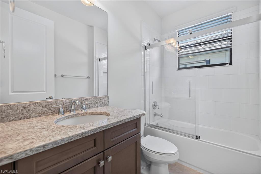 This highly desired Rosé floorplan offers 5 bedrooms, a spacious loft, and a three-car garage with over 3,500 sq ft of living space. Thoughtfully upgraded, this home blends open-concept design with exceptional indoor–outdoor functionality. The main level features 12x24 tile flooring, LVP flooring in the primary suite, a custom wood accent wall with built-in bookcases framing the main TV, and an inviting great room with large sliders that fill the space with natural light and showcase views of the lanai. The kitchen offers a bright, clean aesthetic with a subway tile backsplash, natural gas range, and abundant cabinetry for ample storage. The first-floor primary suite includes two large walk-in closets with custom cabinetry and en-suite shower and separate bath. Upstairs, a generous loft provides flexible space for a media room, playroom, or home office, accompanied by three guest bedrooms and two full baths. Outdoor living takes center stage with a heated saltwater pool and raised spa, sun shelf, and a Pentair remote system to control pool features. The covered lanai includes a outdoor kitchen complete with a grill an ideal setting for entertaining. Natural gas services the pool heater, dryer, water heater, and stove for added efficiency. Residents of Stonecreek enjoy access to extensive amenities including a clubhouse, resort-style pool, fitness center, tennis, pickleball, basketball, and playgrounds, all in a prime North Naples location convenient to everyday necessities, dining, and top-rated schools.