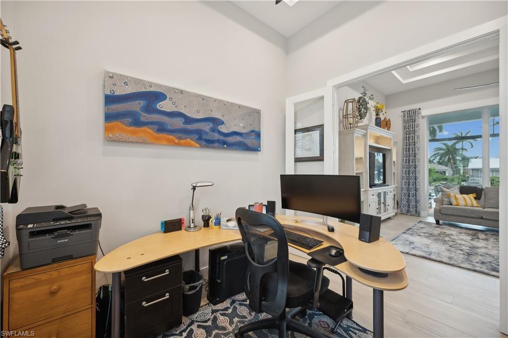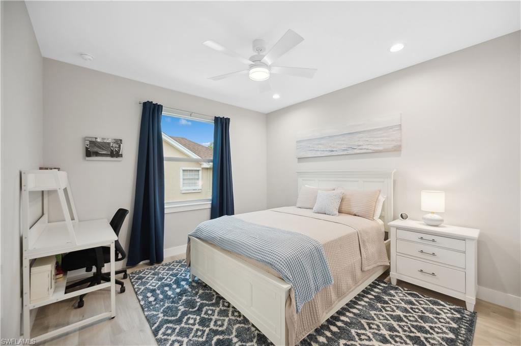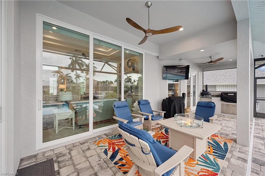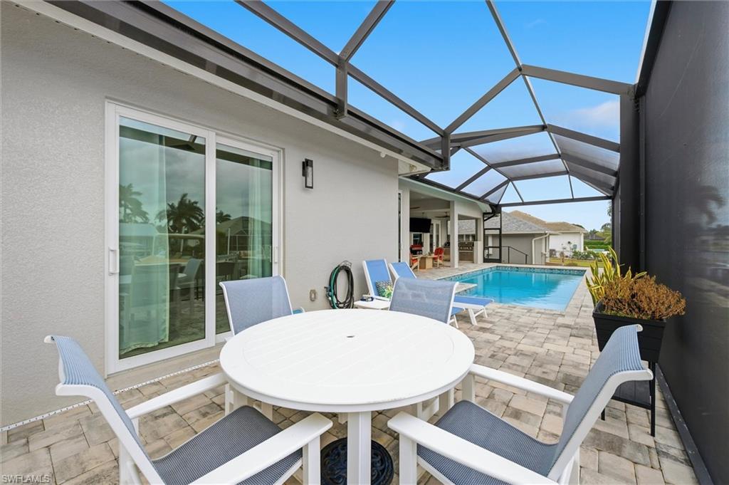 This newer, custom home, built by FCI Homes, features numerous high-end upgrades. The open-concept design includes high ceilings, a split floor plan, three bedrooms plus a den, and three full bathrooms. The kitchen is a standout, boasting quartz countertops, a large island, stainless-steel appliances, a walk-in pantry, and wood-look tile flooring throughout the main areas. The spacious great room, kitchen, and dining area offer tranquil views of the caged pool and the waterfront canal, which includes a 13,000 lb. boat lift and dock. Additional luxury features include: - Generac Generator - Impact windows - Two 10-foot sliders - An outdoor kitchen with a beverage refrigerator and covered lanai The Owner's Suite provides comfort with two walk-in closets and separate vanities. The exterior features beautifully maintained landscaping, an oversized two-car garage, and a circular driveway. The property is ideally located just minutes from the white sand beaches of Marco Island, parks, tennis and pickleball courts, golf courses, shopping, dining, schools, and the YMCA.