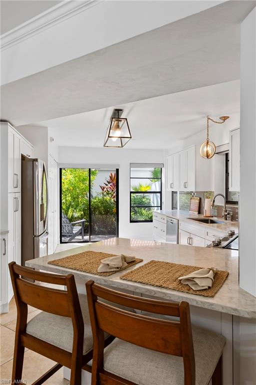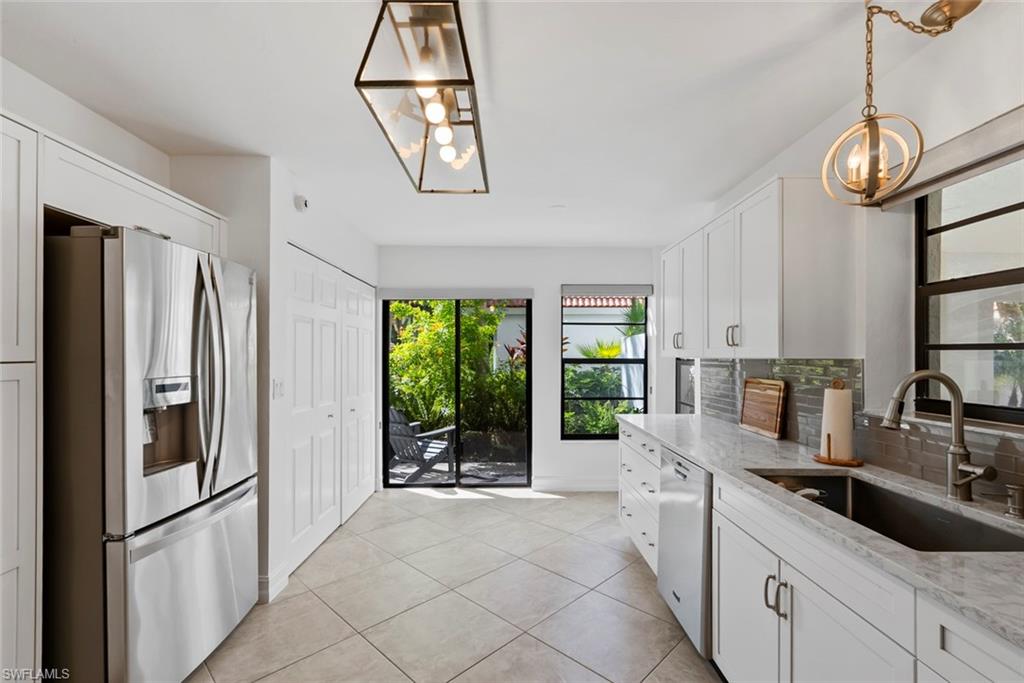 Enjoy all the wonderful lifestyle opportunities Pelican Bay has to offer, including 2 private beachfront dining clubs, miles of pristine white sandy beach with boardwalks, active world class raquet clubs, fitness and wellness center, miles of walking paths and biking, and so much more. Situated just steps from Artis-Naples, a SW Florida top performing arts center, a quick stroll to Waterside Shops with nice dining opportunities and walking distance to the beach tram. This fabulous corner-lot end unit, with spacious floorplan, open living and dining concept, brand new HVAC System, completely repainted and newly furnished, along with an expansive wrap around lanai, is perfect for entertaining family and friends, or for relaxing with views of the golf course. This ground floor condo has 3 generous bedrooms and 2 baths, enjoying abundant natural light throughout. The bright white kitchen has plenty of storage, features a breakfast bar, granite countertops and stainless steel appliances. Lugano is a pristine community in a prime location, pet friendly, with community pool and under cover parking.