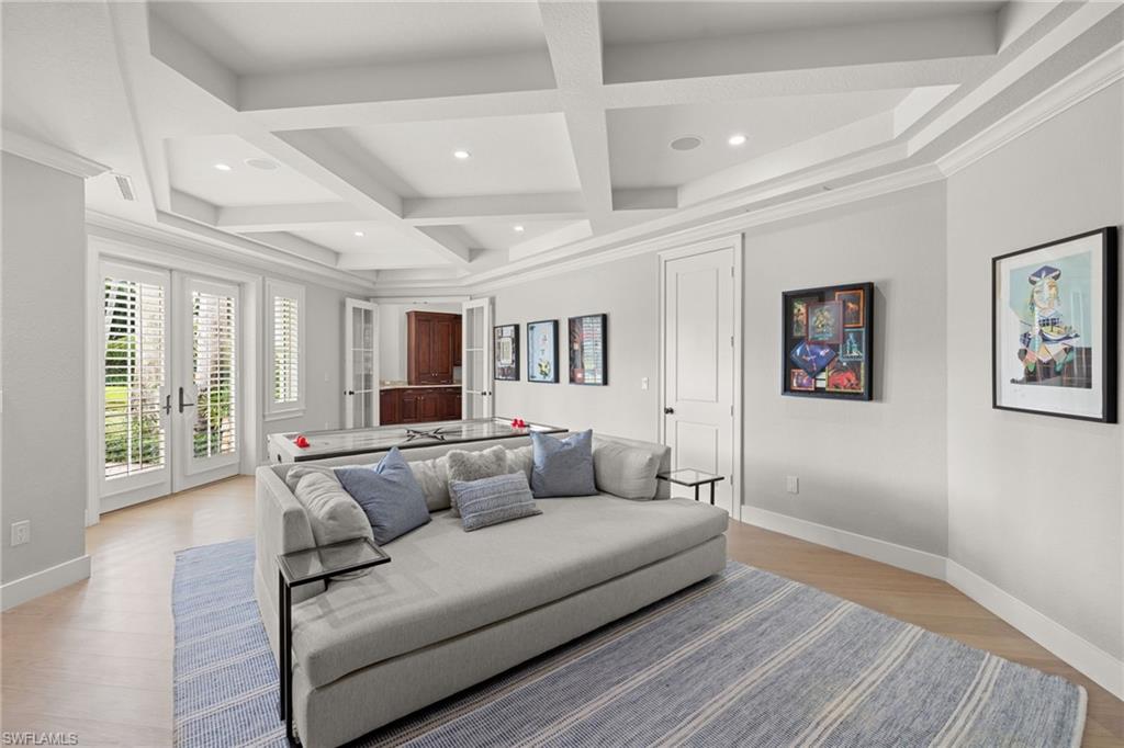 Completely reimagined by BCB Homes, this exceptional 1.3-acre corner property delivers the true essence of luxury living in Pine Ridge. Perfectly oriented to capture sweeping western lake views and spectacular sunsets, the home blends classic architecture with fresh, modern refinement.Inside, the craftsmanship is undeniable—two fireplaces, wide-plank engineered hardwood, and thoughtfully placed marble and tile accents set a warm, elevated tone. Lighted art niches, custom built-ins, and soaring volume ceilings give every room a sense of presence and purpose. Additional features include a temperature-controlled wine cellar, seamless curved glass walls, and a gourmet kitchen finished with rich granite surfaces. The layout was designed for comfort and versatility, offering an exercise room plus a private loft suite with its own sitting area for a quiet escape. Outdoors, the property shines just as brightly. A resort-style pool and spa overlook the water, while the circular driveway and oversized 3.5-car garage ensure both convenience and impressive curb appeal. Lush, manicured landscaping frames the entire estate, creating a private, serene setting. A rare offering where craftsmanship, comfort, and an extraordinary lakefront location come together in perfect balance.