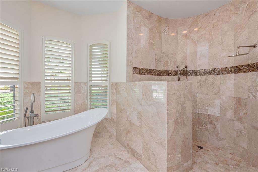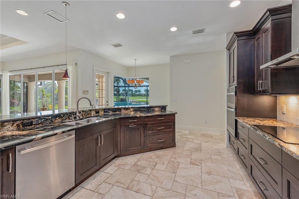 Positioned to capture sweeping west-facing water and golf course views, this refined three-bedroom, two-and-a-half-bath estate home in Eagle Creek Golf and Country Club offers a rare blend of privacy, elegance and resort-inspired living. As the sun sinks over the fairways, enjoy an unrivaled front-row seat to Naples famed sunsets from nearly every vantage point. Inside, marble flooring flows throughout most of the residence, setting a sophisticated tone that carries from the foyer into the bright and open living spaces. The updated kitchen, designed with form and function in mind, features solid wood cabinetry, premium appliances and a walk-in pantry, a thoughtful blend of timeless design and everyday utility. The light-filled primary suite is a serene retreat, with long views of the pool and tranquil vistas beyond. Two custom walk-in closets and a bath finished in elegant marble add a quiet sense of luxury. Outdoors, the residence unfolds into a destination all its own. A large covered lanai and expansive marble pool deck frame the oversized pool and spa, while a panoramic screen enclosure ensures every view remains uninterrupted. It’s a space designed to be peaceful and social, equally suited for quiet mornings or evening gatherings. Recent updates, including a newer tile roof, air conditioning system and water heater, provide peace of mind and lasting value. A short distance away, the newly renovated Eagle Creek clubhouse invites residents to experience championship golf, elevated dining and a vibrant social calendar. For those seeking wellness and leisure, the nearby Crystal Lake clubhouse offers outdoor dining, a fitness facility, tennis and pickleball, and a resort-style pool set among lush landscaping. This is more than a home, it’s a lifestyle framed by views, and tailored for the best of country club living.