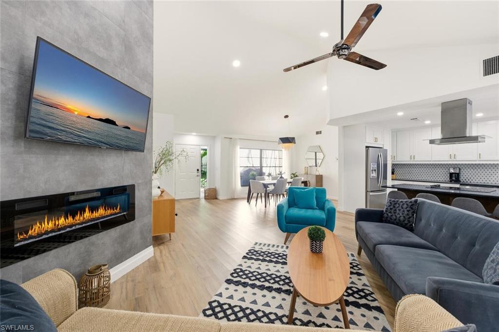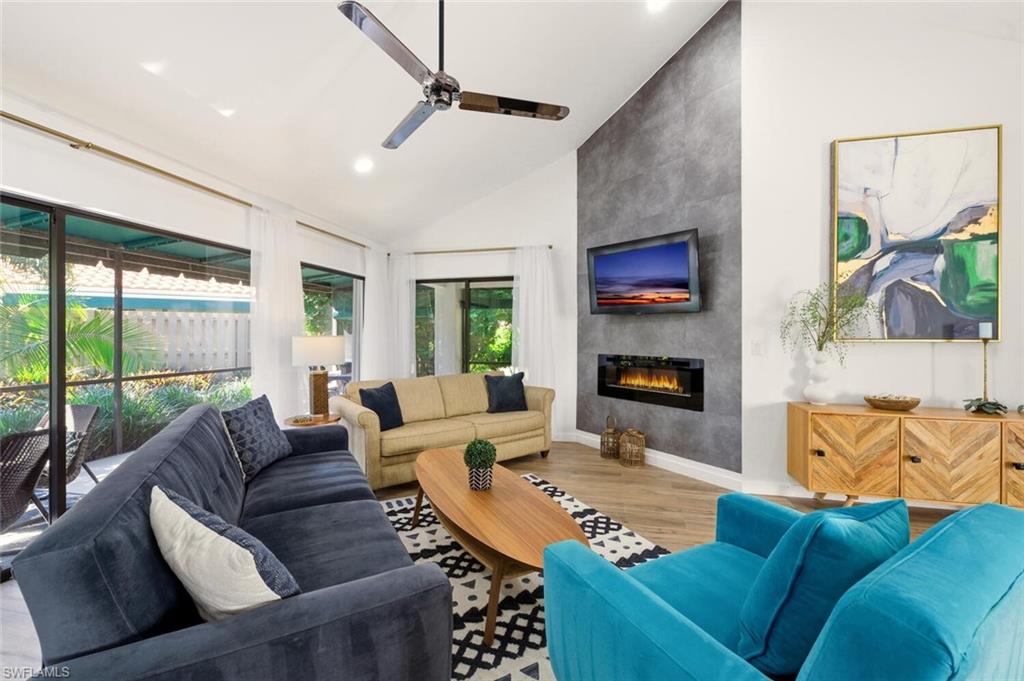 Located less than a mile away from the spectacular Vanderbilt Beach one of Florida's premier beaches this 3 bedroom 2 bath home is one you don't want to miss. Features include: walk in closet in primary bedroom, dual sinks in primary bath, Murphy bed in guest bedroom to maximize space, screened lanai to enjoy the fabulous Naples weather, electric fireplace, and more. Beachwalk is a peaceful development full of mature tropical landscaping and is conveniently located close to numerous shops, restaurants, a movie theater, CVS, Walgreens, a library, Publix, an urgent care, the Mercato shopping and dining complex and more. This beautiful home is perfect for a buyer to enjoy without having the hassle of furnishing or an investor as it is being sold turnkey. The community offers a lot of amenities including a heated pool, hot tub, 6 lighted tennis courts, bocce, clubhouse, on site manager, exercise room, a 24 hour manned gate and an active social calendar.
