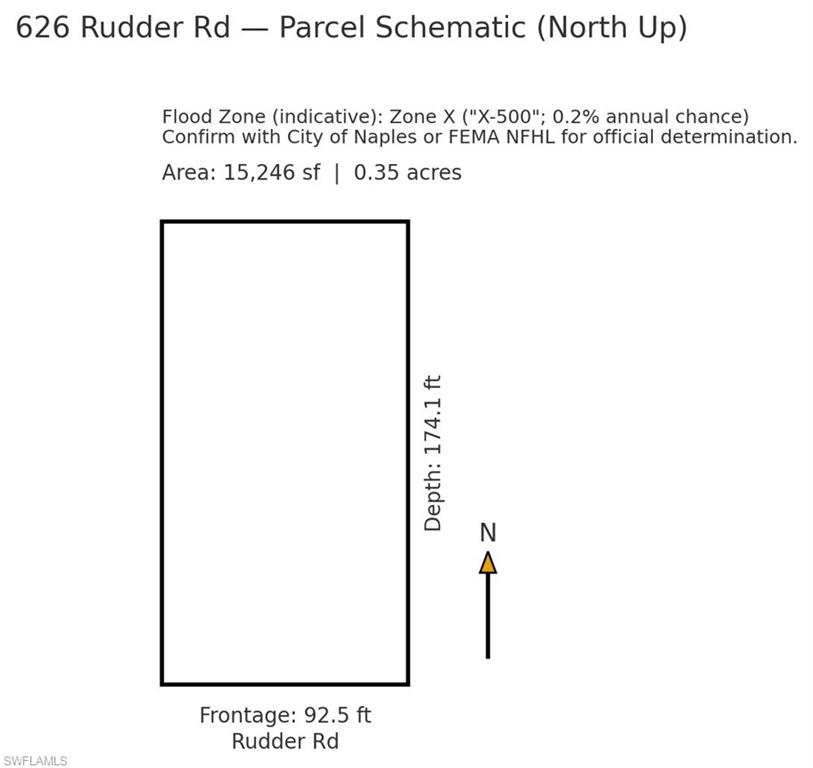 Location, lifestyle, and limitless potential — welcome to 626 Rudder Road in the heart of The Moorings, Naples. Just minutes from the beach and downtown 5th Avenue, this rare .39-acre homesite sits high and dry in the X-500 flood zone — a prime canvas for your dream home. Major improvements within the last three years include a new roof, new aluminum fascia, new underground electric and plumbing water lines, new A/C and new water heater. This oversized lot offers the best of both worlds — privacy, elevation, and proximity to the coast. Imagine walking to the beach, biking to 5th Avenue, and enjoying the luxury of Moorings resident beach access — all from your own newly built Naples estate. Whether you envision a modern coastal masterpiece or a timeless Old Naples design, work with several of Naples’ top luxury builders ready to bring your dream home to life right here. Design. Build. Live the Naples lifestyle — your way. Opportunities like this are rare — and they don’t last long. Set up a private tour to see the property, review floor plans, and explore our curated builder options for your custom home at 626 Rudder Road. Live here. Build here. Create your legacy in The Moorings.