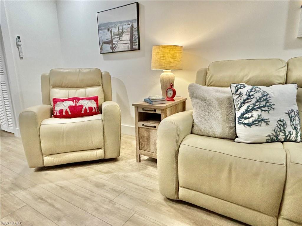 LOCATION - just steps from the beach! Here’s your chance to swap those chilly days for warm island vibes! This super cute, fully furnished/turnkey, 2-bedroom, full bath plus half-bath condo is squeaky clean and well maintained on gorgeous Marco Island is ready for you—just bring your flip-flops and swimwear. This great condo had a 2024 facelift, totally over $100k! The world-famous white sand beach is literally right across the street, so you can soak up the sun whenever you want. Walk over to Residents Beach or public access walkway for swimming, relaxing, or watching the sunset—so easy! Grab a bite at nearby restaurants, hit the shops, or cruise the island on the bike/walking path. Nothing’s far when you’re here. Updated & Move-In Ready. Everything’s set for you with a laid-back beachy style—just unpack and enjoy. Fresh New Look: You’ll love the new kitchen appliances, countertops, updated bathrooms, new flooring throughout, three AC splits to keep things cool and comfy all year round. Kick back on your lanai, overlooking a tropical courtyard and a beautiful banyan tree. The community offers fun amenities, which include the big pool, shuffleboard, outdoor grilling and perfectly kept grounds. A designated parking spot also comes with the unit and guest parking available too! Looking for extra income? Monthly rentals are allowed when you’re not using your place. What are you waiting for? Here's your opportunity to love where you live!