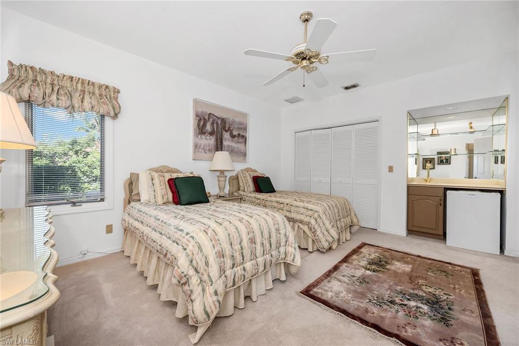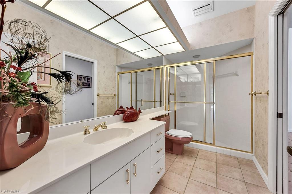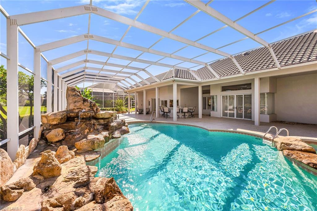 Positioned on a prime lot with long golf course and lake views, this elegant estate presents a rare opportunity to reimagine and customize a home within one of North Naples sought-after gated communities. A wide circular brick paver driveway leads to a stately residence surrounded by lush landscaping and tranquil scenery. Inside, the spacious and light-filled floor plan, featuring three bedrooms, a den and 3.5 baths, offers timeless architectural details and an ideal canvas for modern updates. Expansive windows frame beautiful golf and lake vistas, creating an open, airy feel throughout the living spaces. The oversized lanai extends the living area outdoors, offering abundant space for entertaining or relaxation with its covered sitting area, bar, and pool overlooking the fairway and lake. Whether you envision a contemporary refresh or a full transformation, this home provides exceptional bones and layout flexibility for your vision to come to life. Recent improvements, including a new roof, whole-house generator, HVAC system and 1,000-gallon propane tank, provide peace of mind while you focus on the fun part, design and customization. In the prestigious Quail Creek community, residents have flexibility of optional membership at Quail Creek Country Club, which offers two championship 18-hole golf courses, a grand clubhouse with dining, tennis, fitness and a full social calendar.