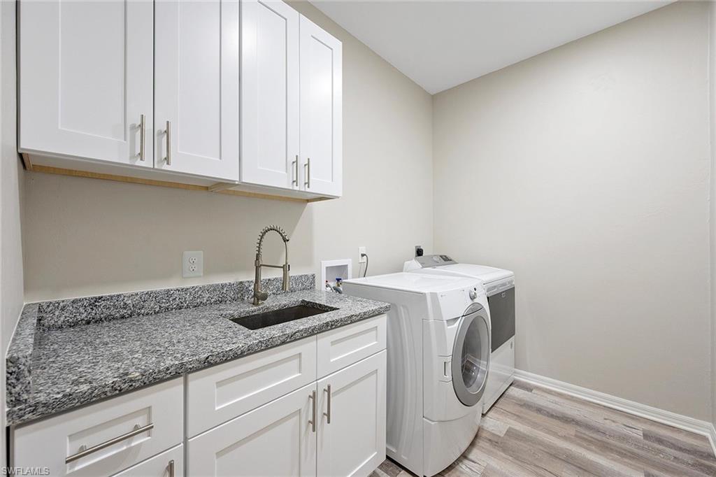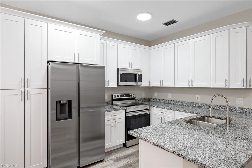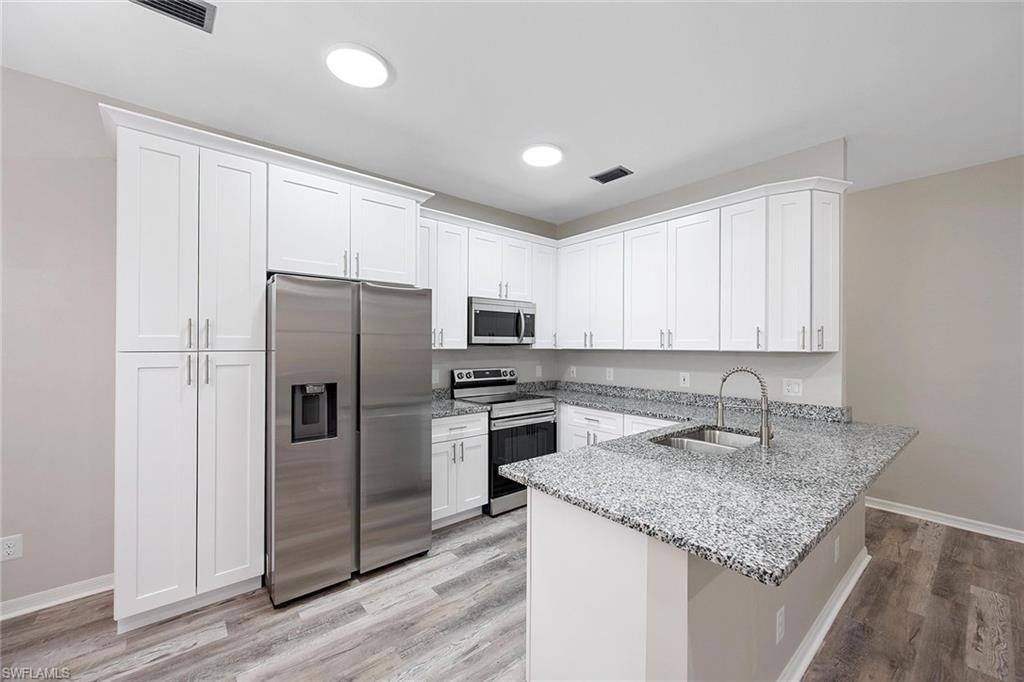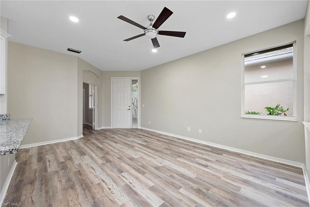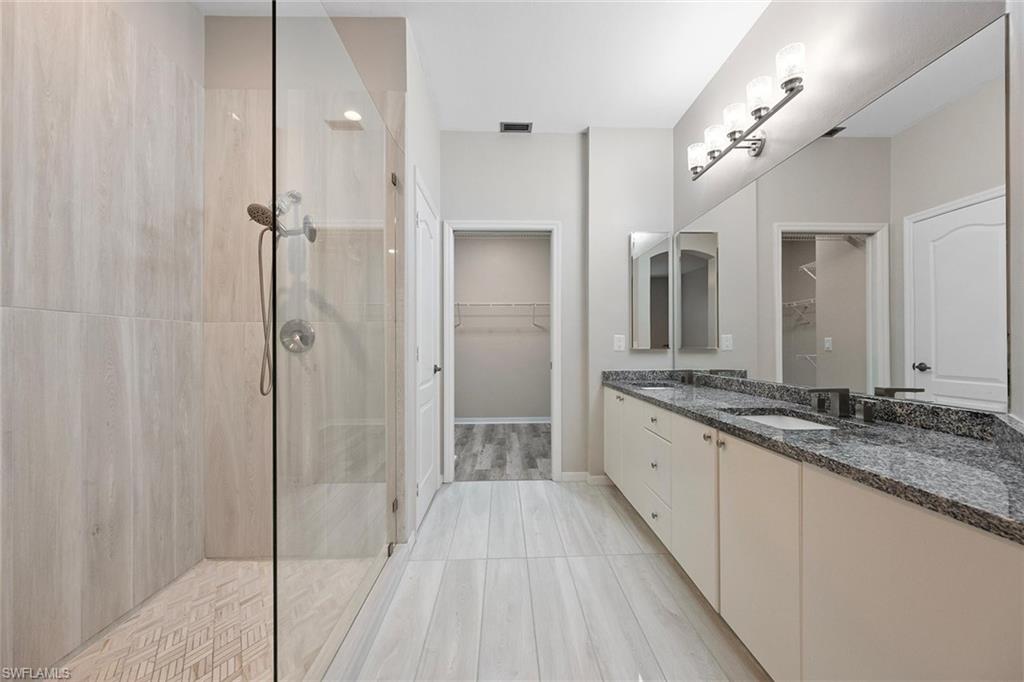 The HOA provides ROOF REPLACEMENT every 15 years, included in fees. Remodeled in 2023, this three-bedroom, two-bath single-family home showcases thoughtful updates, including wood-look tile flooring, plantation shutters, epoxy-coated garage floors and an electric vehicle charger. This beautifully updated kitchen blends style and functionality with sleek cabinetry and gleaming stainless steel appliances. The open layout creates seamless flow into dining area and living areas. Ideal for everyday living and entertaining alike. The primary suite features a walk-in closet and a beautifully updated bath with dual sinks and walk-in shower. A new air-conditioning system (August 2025) adds peace of mind. Outdoor living shines on the screened lanai with covered and open areas for relaxing or entertaining. The Villages of Bonita Springs offers resort-style amenities, including a clubhouse, pool and spa, fitness center, billiards, shuffleboard, and tennis courts that convert to pickleball, along with year-round social activities. Conveniently near downtown Bonita Springs and Coconut Point Mall.