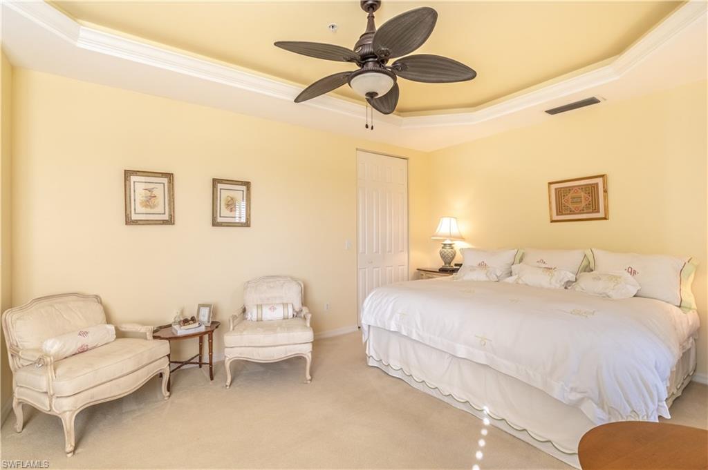 Tucked away in the heart of Pelican Marsh, this beautifully appointed 3-bedroom, 2-bathroom residence captures the essence of refined Naples living. From its elevated perch, it enjoys sweeping southern views of the lake and 9th hole of the Pelican Marsh Golf Course, offering a stunning backdrop of shimmering water, lush fairways, and spectacular sunset skies. A vine-draped archway marks the entrance to Clermont’s most recently constructed building, creating a warm and inviting first impression. Inside, the spacious open layout balances elegance with comfort. The kitchen features timeless white cabinetry, stainless steel appliances, a brand-new refrigerator and dishwasher, a breakfast bar, and a cheerful breakfast nook, perfect for casual dining or morning routines. The great room flows seamlessly into the formal dining area and opens to a private screened lanai, where you can sip your morning coffee while watching golfers on the 9th fairway, or relax in the evening as the sun sets over the lake. The primary suite enjoys the same captivating views and includes dual sinks, a soaking tub, and a walk-in shower. A laundry room within the residence adds convenience, while thoughtful updates such as a 2024 Stiebel Eltron Tempra 15+ tankless water heater and 2017 A/C system ensure modern comfort. Additional highlights include a one-car attached garage, an assigned outdoor parking space, and an expansive 8x22 ft. private storage unit. Ideally situated within walking distance to Pelican Marsh’s tennis and pickleball facilities, fitness center, and on-site restaurant, this home offers easy access to the community’s vibrant social and recreational amenities. Surrounded by lush tropical landscaping and just minutes from Naples’ white-sand beaches, Mercato’s shopping and dining, and the area’s finest entertainment, this exceptional property combines comfort, style, and a quintessential Naples lifestyle. Property is being sold unfurnished.