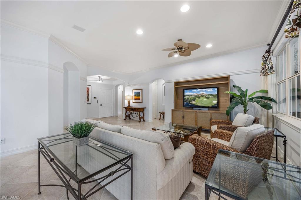 Live the resort lifestyle every day in this elegant three-bedroom, two-bath residence tucked within the exclusive Tiburon Ritz-Carlton Golf Community. Designed for comfort and connection, the home features two spacious living areas and a large kitchen with rich granite countertops, ideal for gathering with friends and family. Go onto the expansive screened lanai with electric storm shutters and enjoy peaceful mornings or sunset evenings surrounded by lush tropical views. Immediate golf and social memberships are available, and an optional club membership unlocks a world of privileges including resort pool access at the Ritz-Carlton, tennis, fitness, fine dining, social events, shuttle to the beach, and concierge services. Every detail invites you to slow down, relax and savor the effortless elegance of Naples living.
