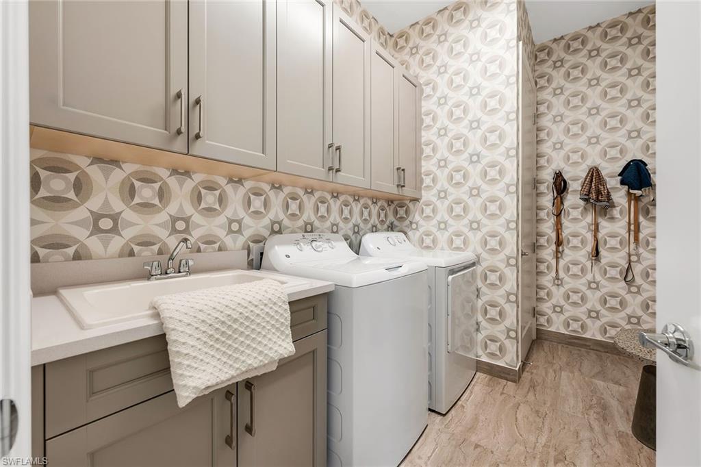 Former Sanddollar model being sold turnkey. This hardly lived-in and beautifully enhanced by owner is on a lovely landscaped, former parade of model homes on a cul-de-sac! New community in a no flood zone. Beautiful open floor plan includes all furniture and accessories as seen, complete with upgrades galore by renowned builder/developer GL Homes is now available for sale in the 55-plus new, resort-style gated community, Valencia Trails. This former model is 2,469 square feet with two bedrooms plus den/optional third bedroom, 2.5 baths, extended/oversized and screened picturesque lanai with stunning private views of the preserve, and rear and side door entry leading to a beautiful multi-level custom pavers patio with romantic bougainvillea arbor, decorative chandelier and fire pit, all visible from front entry. Absolutely stunning and spacious open floor plan with soaring 14-foot entryway ceilings. Upgraded lighting, generous custom built-in closets, coffered ceilings, upgraded millwork and bath fixtures. Oversized dining area, and beautifully integrated custom wine bar/coffee station. Gorgeous contemporary kitchen features recessed lighting, upgraded appliances, oversized island and plenty of cabinetry. Reasonable dues, and no annual fees or membership. Dues include central station alarm system with a medical alert system, rubbish removal, landscape maintenance services and staffed main gate. Enjoy your new state-of-the-art clubhouse featuring a restaurant and bar, resort-style pool, lap pool, resistance pool, gym, live music, art classes, cooking classes, day spa, tennis, pickleball, group activities, numerous clubs, Broadway-style shows, trips, visiting farmers markets, vendor shopping, large and small dog parks, and miles of walking/biking trails. Easy maintenance and luxury lifestyle, one of a kind. Enjoy your three clubhouse pools and let someone else handle the maintenance. Save the headache, hassle and thousands of dollars moving your furniture.