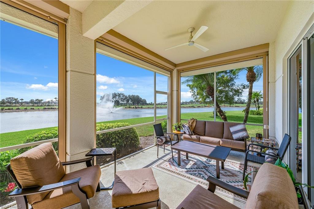 Discover luxurious living in Avellino Isles! This beautiful renovated home offers breathtaking water and golf course views from the south-facing lanai with Kevlar electric hurricane shutters. The newly decorated kitchen is a chef's dream, featuring quartzite countertops, a breakfast area and off the laundry, a large walk-in pantry room. The Avellino community has just completed installing all new tile roofs, new gutters and downspouts, new neutral exterior paint and new exterior carriage lights. This unit is a short walk to the updated Avellino Clubhouse, which provides an Olympic pool/spa, new pool furniture, updated fitness center, barbecue grills, social room, card room, sauna and library which provides a place for residents to gather and socialize. The Vineyards Country Club, which offers two types of memberships with two 18-hole championship courses, and a recently added wellness center and clubhouse, can be joined with little or no waiting list. All providing a magnificent lifestyle.