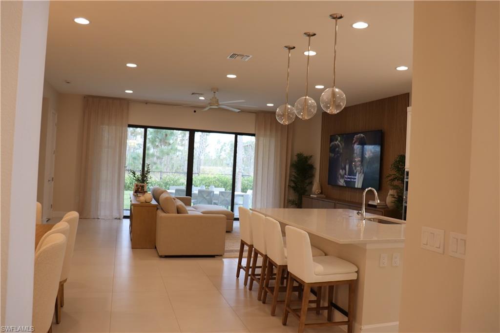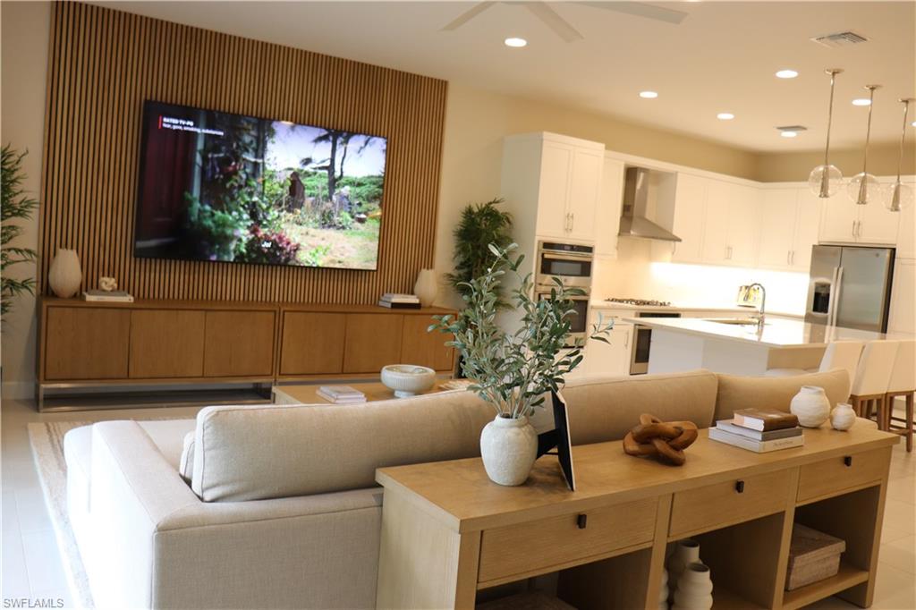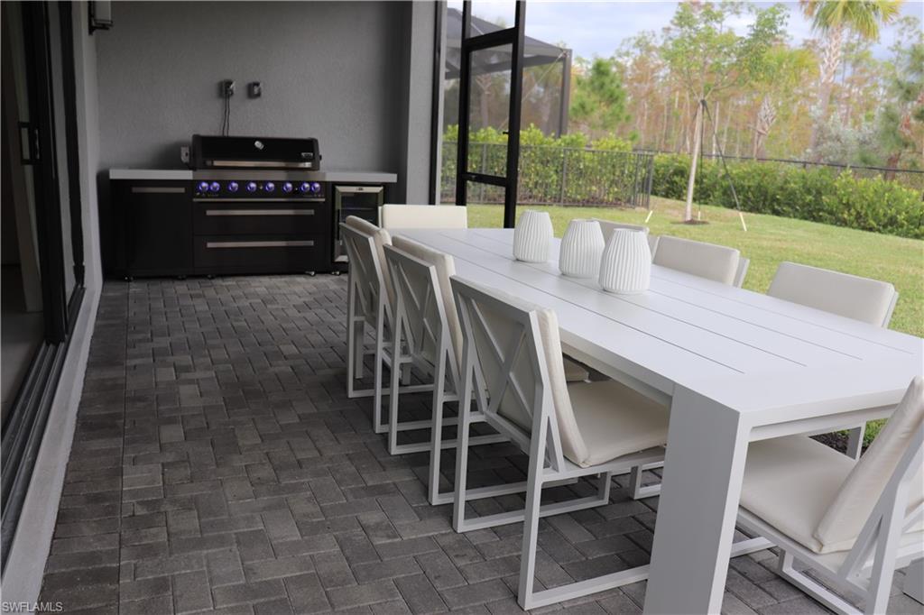 This stunning turnkey-furnished home offers over 3,000 sq. ft. of modern living space with 4 bedrooms, a den/home office, a cozy loft, and 4 full baths. Built in 2024, it features an open-concept floor plan, high ceilings, impact-resistant windows and sliding doors, and designer finishes throughout. Welcome to RiverCreek, one of Estero’s newest luxury communities! Experience luxury, convenience, and peace of mind, this beautiful home is ready to welcome you just in time for the end-of-year celebrations, perfect for hosting family and friends in style and comfort! The gourmet kitchen includes a large island, gas cooktop, stainless steel appliances, quartz countertops, and abundant cabinetry what is perfect for entertaining. The primary suite boasts tray ceilings, dual walk-in closets, and a spa-like bath with dual sinks, soaking tub, and separate shower. Why wait for a builder to construct your dream home when you can move right into this spectacular, modern, contemporary residence? Spacious and thoughtfully designed, it offers plenty of room in the backyard to add a swimming pool and jacuzzi in the future, at the buyer’s discretion. This home is move-in ready, combining style, comfort, and flexibility for your lifestyle today. Enjoy serene preserve views from the lanai upgraded with outdoor kitchen black stainless steel Grill featuring six burners, and an outdoor-rated fridge for the ultimate grilling experience. Experience the convenience of a fully designer furnished, move-in ready home, every detail has been carefully curated for comfort and style. Located in the gated RiverCreek community by GL Homes, residents enjoy resort-style amenities including a clubhouse, resort pool, fitness center, tennis, pickleball, basketball, bocce, playground, and splash park.