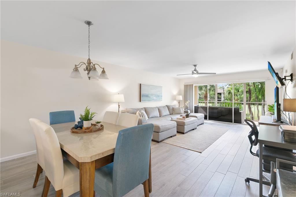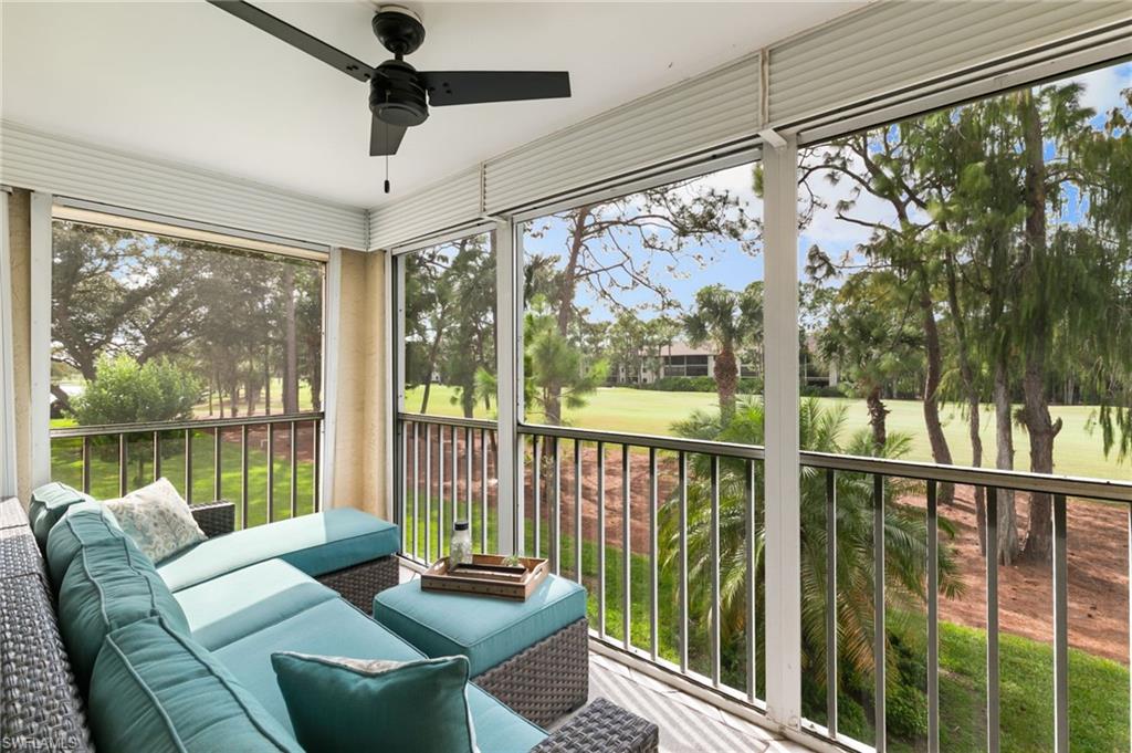 Welcome to Amberly Village in Royal Wood Golf & Country Club, an exceptionally located community central to everything you could want in a South Florida lifestyle. This is a rare, bundled golf community, only 5-6 miles from 5th Avenue, world class dining and shopping, the Naples Pier and our pristine beaches. This charming, updated condo features tile floors throughout, a beautifully appointed kitchen with custom cabinets, Quartz countertops, stainless steel appliances, and abundant storage. The 2 bedroom, 2 full bath layout is spacious and comfortable, while the 2nd floor location and west-facing screened balcony provides pretty views of the 14th fairway and the sunset, with the additional peace-of-mind that you're safe from any storm flood waters. The water heater and A/C were new in 2024 and in the laundry room you will find plenty of extra storage and a 2024 set of front-loading washer & dryer. Full golf and social memberships are yours as soon as you close, no wait-list, and amenities and activities abound. Amberly Village features a pool, spa, tennis/pickleball court and bocce for its residents, but if you're looking for a more social atmosphere, just head down to the Royal Wood clubhouse. There you will find a restaurant and bar, fitness center, racquet courts, library, pro-shop and all sorts of social activities, dances, trivia and more, and of course men's and lady's golf events on the Championship 18 hole course. When you do need to leave the community, all the needs of everyday life can be met with just a short drive...grocery stores, home improvement, medical needs and even more amusing things like Tin City, Celebration (food-truck) Park, the Botanical Gardens, the now famous Naples Pickleball Center and even beach, boating and water activities on Marco Island. Royal Wood is a great community for golfers and non-golfers alike, but with fewer and fewer public golf options and the sky-rocketing costs of private golf clubs, Royal Wood is a fantastic value. What are you waiting for? Start living and playing in Naples today!