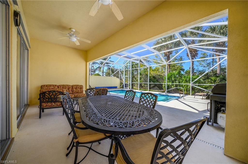 Butterflies are free to fly. Nestled in the back of Village Walk of Bonita across from our breathtaking Butterfly Gardens, you will find this immaculately kept home. This coveted OAKMONT Model with three bedrooms and a den/office is being sold fully furnished. The home is move in ready for those looking to escape the upcoming winter up North and in the Midwest . This is truly a must see property. Upon entering the home, you see right through the exterior glass sliding doors onto the Lanai sorting a newly resurfaced Pool and new pool pump. This is just one of the well maintained areas being sold with this home. Dining Al Fresco on the lanai is a special treat overlooking the pool and landscaped area. When all sliders are open, you experience indoor/outdoor living at its best. When inquiring about the Roof age, the answer is 5 Years, Air Conditioning 4 Years old. Plantation shutters are in all rooms. Stainless Steel Kitchen Aid appliances complement the white Kitchen cabinetry. For ease of mind, the home has Remote controlled Roll Down Hurricane Shutters on the front and back, and Accordion shutters on all remaining windows. Envision yourself living the Florida lifestyle you deserve in this serene setting. The community is well known for its abundance of clubs you can join, activities galore with onsite activities director, a Resort pool second to none with dining service poolside while mingling with other lay back residents. For the Sports enthusiast, you have access to tennis, pickleball, bocce, basketball, lap pool and large fitness center overlooking the lake; other amenities include Village Walk Bar and Grill, Library, Community Center , Gazebo, Bagel Shop, Hairdresser, Royal Scoop Ice Cream Shop, Car Wash. Recognized as one of the lowest HOA fees for what is included (even cable tv and xfinity wifi), you can't go wrong This is truly THE place to call home. Come explore for yourself. You will be happy you did.