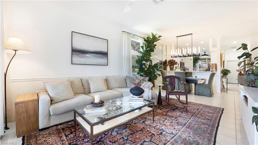 Step into effortless Florida living with this beautifully maintained end-unit villa in the desirable Heritage Greens community of North Naples. Perfectly positioned to capture serene golf course fairway views and surrounded by vibrant tropical landscaping, this home offers the ideal blend of comfort, privacy, and convenience. If buyers are interested in any of the furnishings, the furniture is negotiable outside of contract (except for a few items). Designed with an open, airy layout, this spacious single-level villa lives like a single-family home—without the upkeep. It features two bedrooms plus a flexible den that easily doubles as a home office or another living or sleeping space, two full bathrooms, and a two-car garage. Natural light pours in through large windows, creating a warm and welcoming ambiance throughout. The kitchen and bathrooms have stunning upgrades. Tile flooring extends through the main living areas, complemented by crown molding, new ceiling fans, light fixtures, and newer kitchen appliances that enhance both style and function. New garage door opener was also installed in the garage. The inviting primary bedroom overlooks the tranquil backyard and features a charming bay window that’s perfect for reading, relaxing, or simply taking in the peaceful view. Step outside to enjoy the screened lanai or unwind on the open patio, where you can sip your morning coffee or soak up the afternoon sun in total privacy. Heritage Greens is known for its friendly atmosphere, well-kept surroundings, and exceptional amenities. Residents enjoy access to two community pools, tennis and pickleball courts, and the public Arrowhead Golf Course—offering the benefits of golf course living without the membership fees. Whether you love to play or simply appreciate the scenic backdrop, you’ll enjoy the flexibility to book a round any time of year. The community also welcomes pets, allowing up to two furry companions to share in the Naples lifestyle. Situated in a prime North Naples location, you’ll be minutes from many dining and shopping options and the area’s world-renowned Gulf beaches. Quick access to I-75 makes it easy to explore all that Southwest Florida has to offer. With low HOA fees and a preferred X-flood zone location, this home offers peace of mind and outstanding value—most lenders don’t even require flood insurance here. Move-in ready and waiting for its next owner, this villa is perfect for anyone seeking a seasonal retreat, a year-round residence, or a maintenance-free lifestyle in one of Naples’ most welcoming communities. Come see for yourself why Heritage Greens is such a special place to call home and make this well-appointed villa your own piece of paradise.