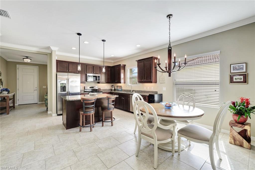 Turnkey elegance awaits in this impeccably maintained property, featuring three bedrooms, two bathrooms, and a versatile open den. This home is a boater's dream, offering an extended garage designed to securely accommodate your vessel indoors. Sold fully furnished with high-end items, the residence features numerous updates, including a new water heater (installed in 2025) and an insulated garage door. Enjoy the heated, west-facing pool and outdoor kitchen, which offer fabulous view of the pond and sunset. The property have been upgraded with crown moulding. The property has window shutters and solar shades in the lanai. Built in 2016 and lightly used, with only 4 to 5 months of annual use, every detail of this property was crafted with efficiency in mind. The home is located just 9 miles from the vibrant heart of Naples, providing easy access to top-rated restaurants, shops, and conveniences.