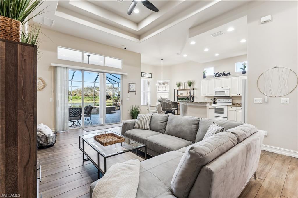 Located in the gate-secured enclave of Ashton Place within the premier Lely Resort, this stunning one-story lakefront home offers the perfect blend of resort-style living and peaceful privacy, complete with automatic access to The Players Club & Spa. Step inside and embrace refined yet relaxed Florida living. The thoughtfully designed 3-bedroom, 2-bath layout—plus den/living room or flex space—features tile flooring throughout, volume ceilings, and an abundance of natural light, creating a seamless indoor-outdoor flow. The gourmet kitchen is a true showstopper, boasting granite countertops, breakfast bar, ample cabinetry, a large pantry, and brand-new stainless steel appliances—perfect for both everyday living and entertaining. Just beyond, expansive sliding glass doors open to your private backyard oasis. Set on an oversized lakefront lot with no rear neighbors, enjoy tranquil water views and breathtaking sunsets from your screened lanai, overlooking the sparkling pool and spa—an ideal space for relaxing or hosting friends and family. A brand-new washer and dryer add extra convenience and peace of mind. As a resident of Ashton Place, you’ll enjoy exclusive access to the award-winning Players Club & Spa, featuring resort-style pools, a full-service spa, fitness center, tennis and pickleball courts, and dining. Golf enthusiasts will appreciate three championship courses just minutes away. Whether you’re searching for a full-time residence or an exceptional seasonal retreat, this move-in-ready home invites you to live the Naples lifestyle with luxury, privacy, and an unbeatable location.