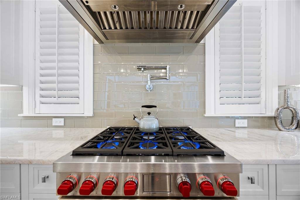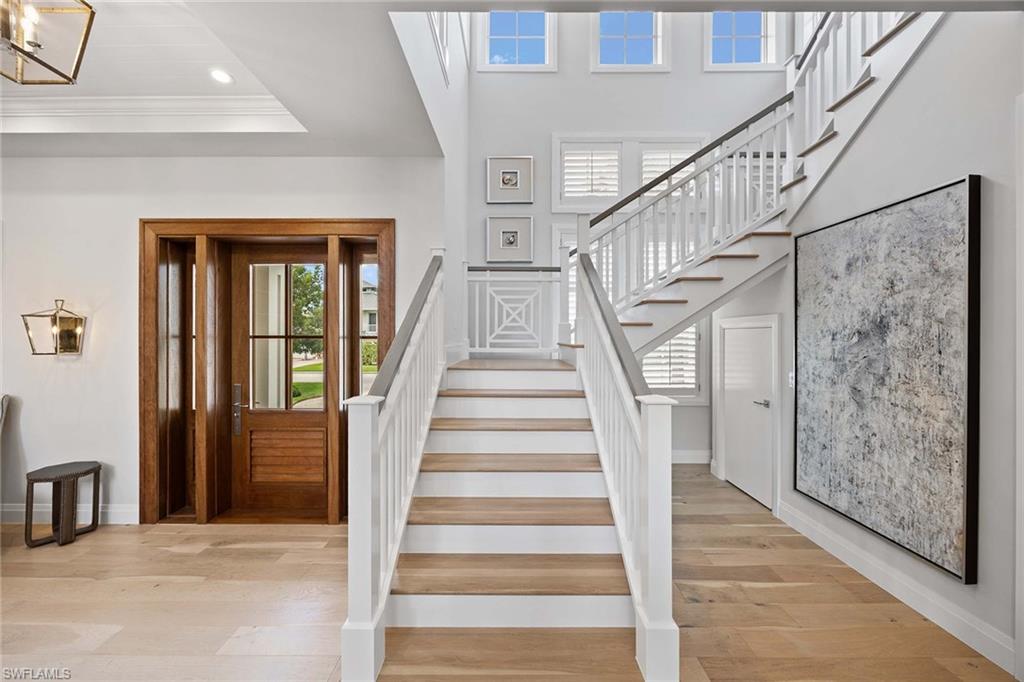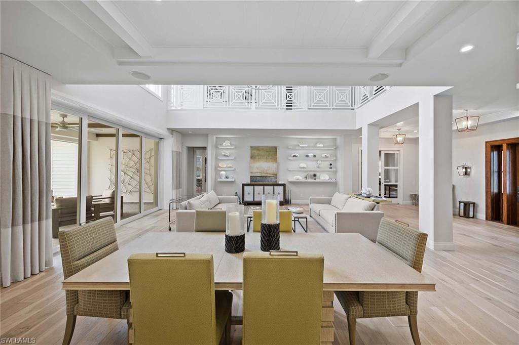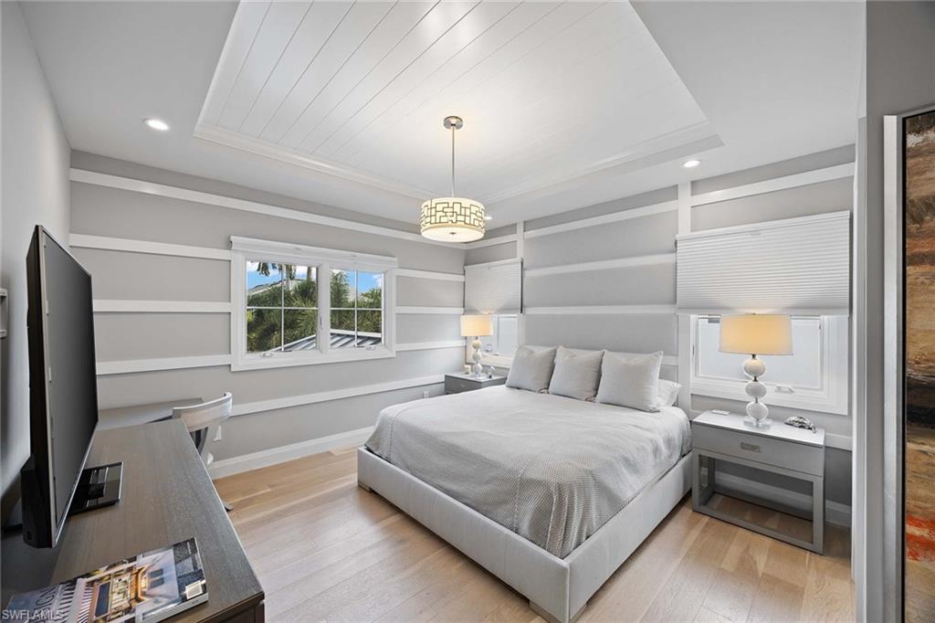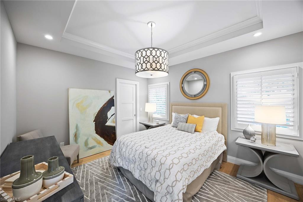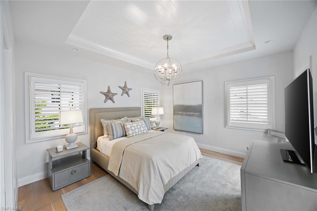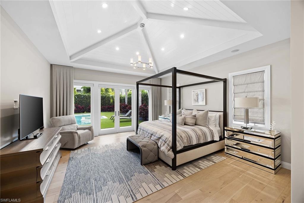 Embodying timeless coastal elegance, Seaglass Cottage emerges as an architectural masterpiece in the heart of Old Naples, a short distance from paradise, just seven blocks to the pristine Gulf Shores, four blocks to the vibrant shopping and dining on 5th Avenue and 3rd Street, epitomizing the pinnacle of Old Naples lifestyle. Celebrated as Home & Design Magazine's Signature Home of the Year and masterfully designed by MHK Architecture, this residence, completed in 2017 features a convenient first-floor main suite plus four additional en suites, totaling 6 1/2 baths. Desirable southern exposure for ultimate refined living. The chef-inspired kitchen boasts premium finishes such as Cristallo quartzite countertops, Ruffino cabinetry and top-tier Sub-Zero/Wolf appliances. As one of the select homes in Old Naples, upgraded from a traditional propane tank to continuous natural gas service. The outdoor oasis rivals a luxury resort, complete with a saltwater pool featuring a sun shelf, spa and waterfall, alongside an outdoor kitchen and fireplace.
