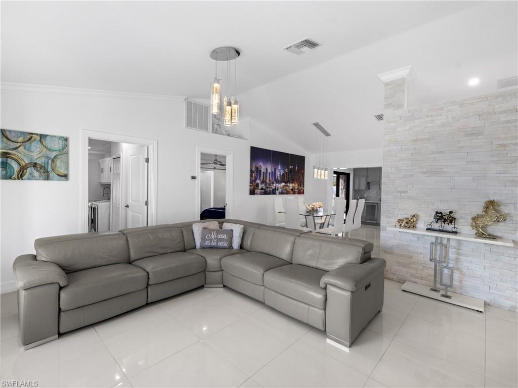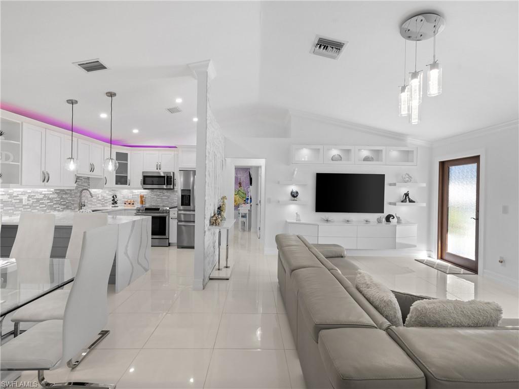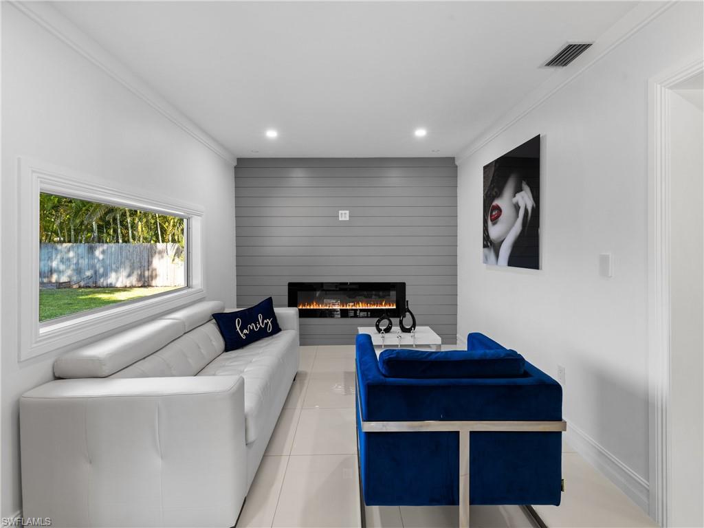 **01/07/26 A 2nd Chance for another Lucky family to own this gorgeous home!! Officially back on the market, Buyers Loan DENIED week prior to closing. This home Appraised at $560k, breezed through inspections.** Beautifully Remodeled Modern Home in Golden Gate City Loaded with Upgrades! Welcome to YOUR move-in ready dream home: 3 Bedroom, 2 Bathroom , Garage converted to AC living space, in the heart of Golden Gate City, offering modern finishes and flexible living spaces. Enjoy quick access to Naples beaches, shopping, dining, parks, and major roadways & I-75. Inside, a few features are: Impact windows & doors, professional custom finishes throughout, including high-gloss cabinetry, quartz countertops, ALL closets/storage custom built in, recessed lighting, electric heated fireplace, bar area, wine fridge, large tile flooring, modern lighting fixtures, blackout window treatments on all windows, and smart home touches, outdoor kitchen, wired in security camera system and a converted garage adds exceptional versatility functioning as a 4th bedroom with walk-in closet or a home office/gym/playroom, in addition to the oversized laundry room with tons of space and storage. All appliances seen are included. A family room built for relaxation w/a custom bar, electric heated fireplace, wine fridge, shiplap accent wall and a picture window overlooking the backyard. The back porch includes a custom outdoor 5 burner gas cooktop, granite countertop kitchen, insulated aluminum roof, ideal for year round Florida style gatherings. Fenced in yard w/drive-in access on both sides of the property makes it easy to park trailers, work vehicles, or recreational equipment. Home Updates: HVAC 2017, Shingle Roof 2022, Soft Water System 2022, Impact Windows & Doors 2025, Electric Panel 2025, Water Heater 2025, Remodeled Kitchen & Bathrooms, Outdoor Gas 5 Burner Range Kitchen, Wired in Security Camera System, Electric Heated Fireplace & Built-In Bar w/quartz countertop & wine fridge, Non-Conforming Converted Garage includes: 4th Room w/Walk-In Closet & Oversized Laundry Room,