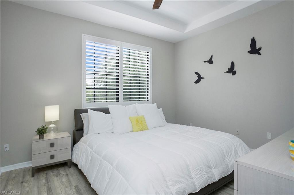 Incredible Buyer Opportunity! This home offers an assumable FHA loan at just 2.87%—a rare find in today’s market. Enjoy peaceful lake views from this well-maintained townhome featuring a new roof with the assessment fully paid. The extended screened lanai is ideal for morning coffee or relaxing in the evenings while taking in the water views. Inside, the home offers an inviting open layout with a bright white kitchen, pantry, breakfast bar, and seamless flow into the dining and living areas. French doors open to the lanai, creating an easy indoor–outdoor feel. Plantation shutters, tile flooring downstairs, and warm luxury vinyl plank flooring upstairs tie the spaces together beautifully. The upstairs owner’s suite features coffered ceilings, a walk-in closet, and a refreshed bathroom that includes an updated frameless glass shower. Two additional bedrooms and a full guest bath provide comfortable space for family, guests, or a home office. A spacious laundry room with extra storage and an attached one-car garage adds everyday convenience. Located in a gated community with resort-style amenities—pool, fitness center, tennis, basketball, playground, and more—this home also offers quick access to Founders Square, top restaurants, grocery stores, golf, and area hospitals. A wonderful opportunity to own a move-in-ready home in a desirable North Naples location.