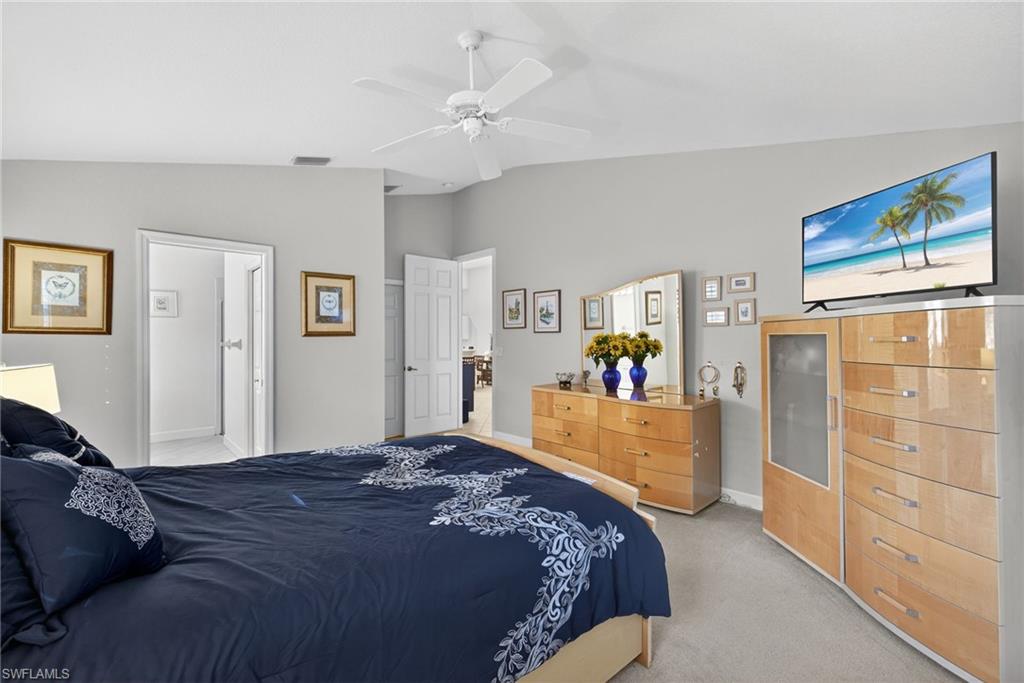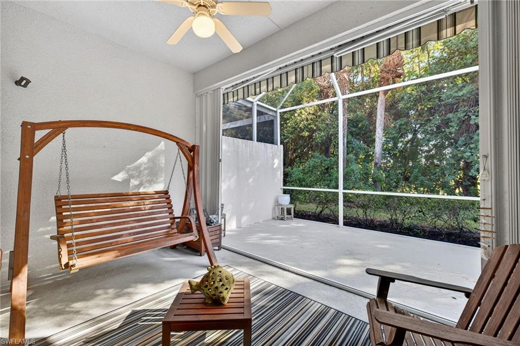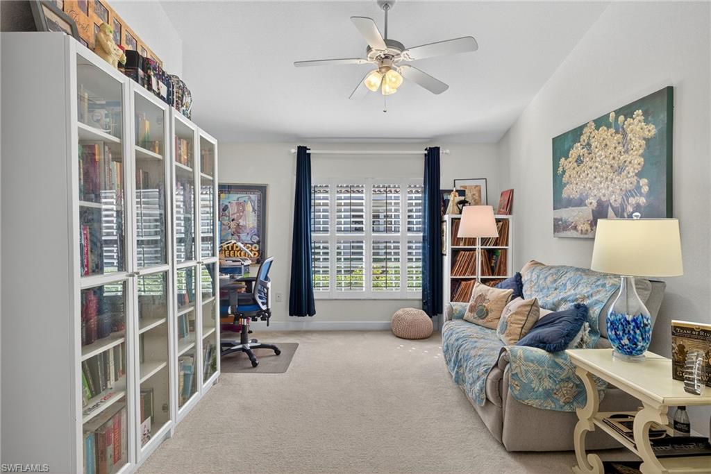 This attached villa is nestled in a tranquil and pleasant setting in the gated community of Carlton Lakes in north Naples. The home has vaulted ceilings and lovely wooded views from the screened lanai. There are 2 bedrooms plus a den and 2 full bathrooms with a split floorplan which gives privacy to all. Tile flooring extends through the main living areas, with carpet in the bedrooms and den. The office is perfect for a third guest bedroom, and it has great natural window light. The property is further enhanced by boasting storm protection shutters, an attached 2-car garage with built-in EV charger, and space for a private pool to be built in the backyard. The neighborhood is well-established with a welcoming Community Clubhouse. Fishing is allowed from the charming neighborhood overlook dock, where you might also catch a stunning sunrise or sunset. Amenities include a spacious pool, tennis courts, bocce, social events, sidewalk paths, mature trees and lush tropical landscaping. Enjoy 16 lakes & 50 acres of nature preserves all within Carlton Lakes. This residence is a wonderful choice for full time living, rental investment, retirement, vacations, or snowbirds. Cable, internet and lawn care are all included in the association fees. Close to amazing beaches, public golf, ample restaurants, local parks and also super easy to get to all conveniences such as grocery, gas, and the SWFL International Airport. This is your chance to own a special slice of paradise.