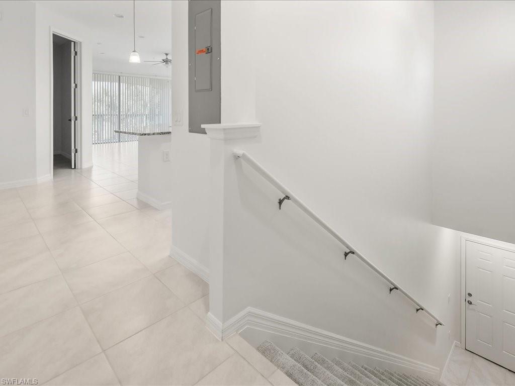 Welcome to this beautifully maintained second-floor coach home in the gated community of Paloma, offering stylish living, peaceful lake views, and an exceptional Bonita Springs location. This spacious 3-bedroom + den, 2-bath residence features an open-concept design with abundant natural light, high ceilings, and modern finishes throughout. The upgraded kitchen includes granite countertops, stainless steel appliances, 42" upper cabinets, a pantry, and a large island perfect for casual dining or entertaining. The great room flows seamlessly to the screened lanai, where you can relax and enjoy serene water views and gentle breezes. The generous primary suite offers lake view, walk-in closet, and an ensuite bath with dual vanities and a walk-in shower. Two additional guest bedrooms plus a separate den provide flexible space for visitors, a home office, or a fitness room. A convenient 1-car attached garage provides storage and easy access. Paloma is a sought-after community of Bonita Springs offering resort-style amenities, including a sparkling community pool, fitness center, clubhouse, tennis court, and scenic walking paths. Ideally located minutes from Downtown Bonita Springs, Bonita Beach, Coconut Point Mall, I-75, and top dining and shopping. Perfect as a full-time residence or seasonal retreat—this well-appointed coach home delivers comfort, convenience, and Southwest Florida charm. Brand new carpet and paint and well appointed finishes. This competitively priced home is waiting for you in Sunny Florida and available now!