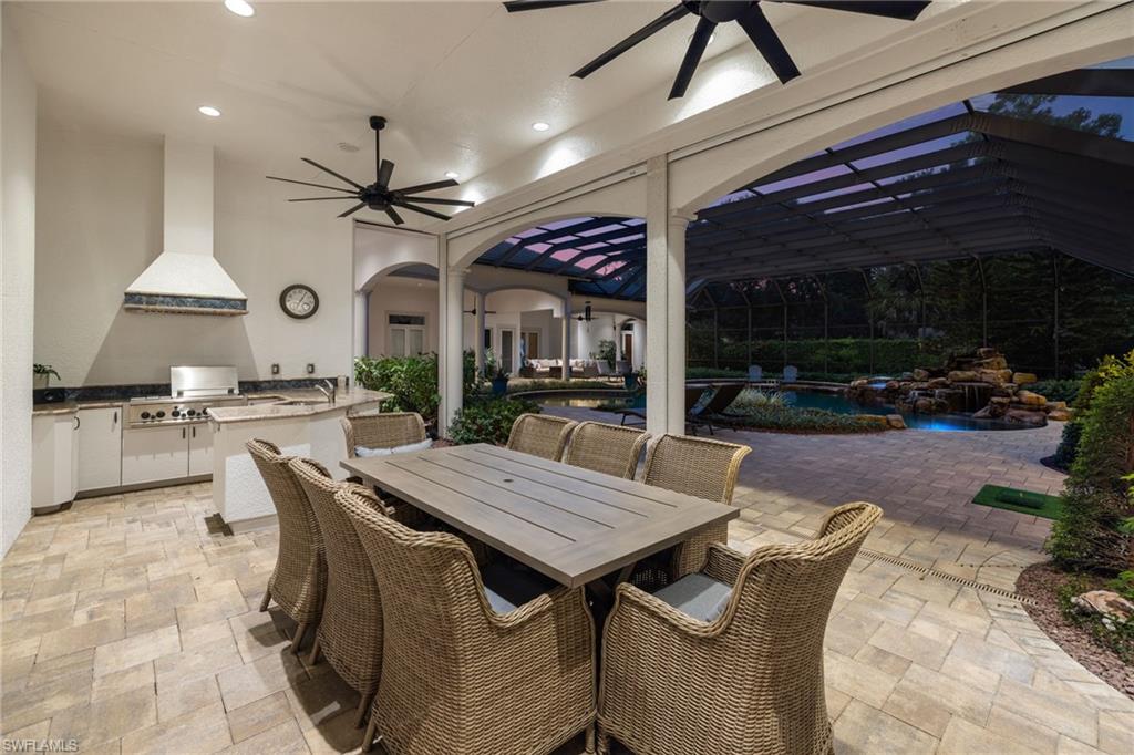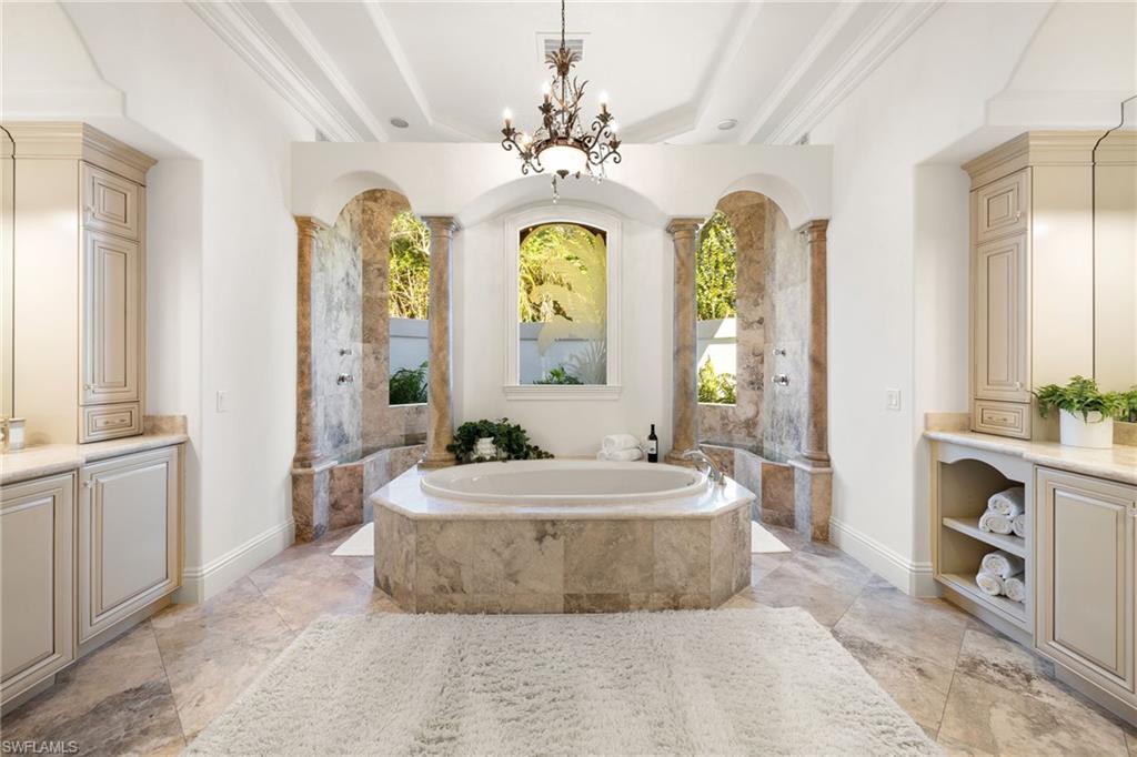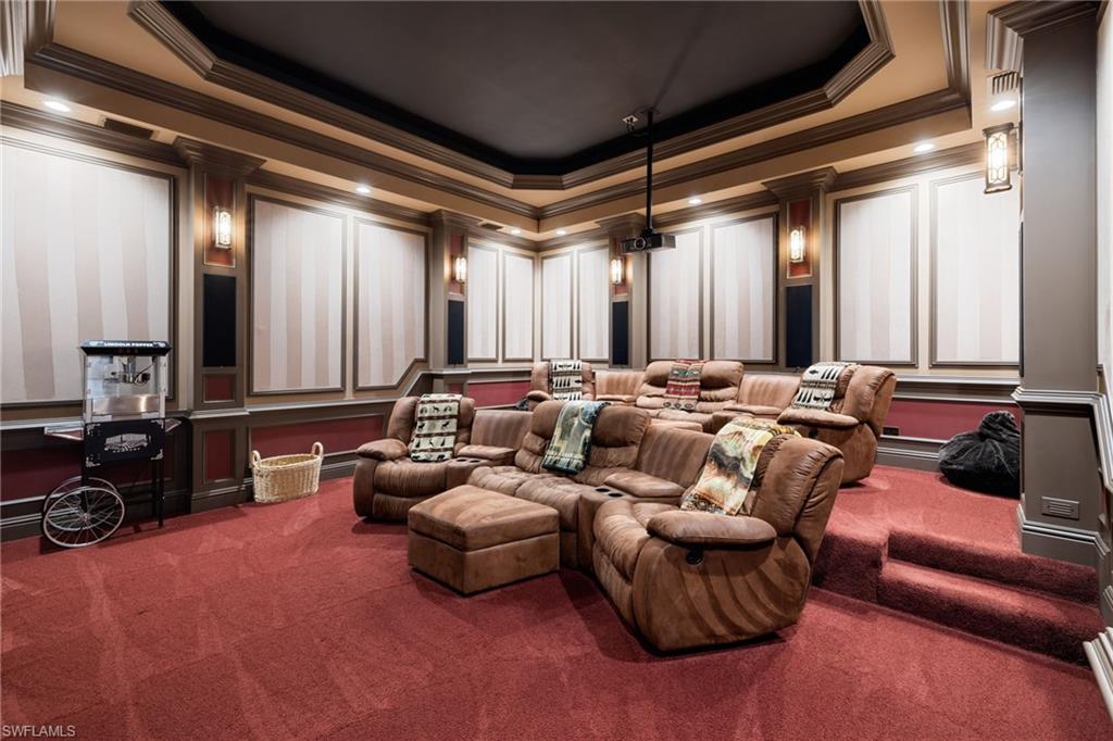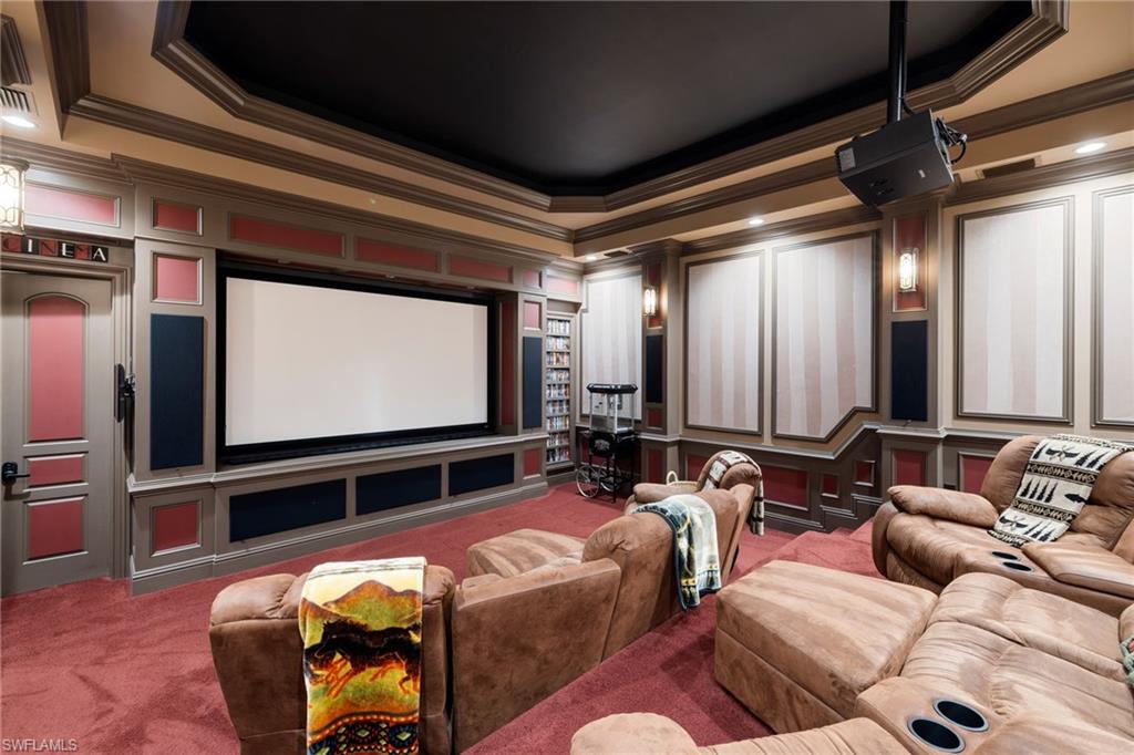 A true Pine Ridge compound, 185 Tupelo Road is designed for people who live, host, and work on a large scale. Set on a secluded 1.17-acre homesite, this residence offers approximately 13,474 square feet under air (over 21,000 square feet total), with 12 bedrooms, 9.5 baths, two full guest houses, a private theater, and resort-style outdoor living. Inside the main home, a grand entry opens to multiple living and dining areas that comfortably handle everything from everyday life to large gatherings. The central kitchen is outfitted with professional-grade Viking appliances, a prep island, and an expansive butler’s pantry with wine and bar service, anchoring the home for serious cooking and effortless entertaining. The floor plan offers tremendous flexibility with numerous additional rooms for offices, playrooms, fitness, or creative spaces. The spacious primary suite includes a sitting area, dual walk-in closets, and a spa-style bath with soaking tub and multi-head shower. Two separate guest houses/in-law suites make this property stand out. Each offers its own living room, kitchenette, bedroom, and bath, ideal for long-term guests, multi-generational living, staff, or a private work retreat - while maintaining privacy from the main residence. At the heart of the property is a dramatic courtyard with a free-form lagoon pool, waterfall grotto, integrated spa, and generous deck space for lounging in the sun or shade. An outdoor kitchen with built-in grill and bar seating makes entertaining simple, while a pool bath, cedar-lined sauna, and separate steam shower turn the courtyard into a true at-home resort. A dedicated home theater with multi-level seating and immersive sound delivers a true cinema experience without ever leaving the property. Practical features include a four-car garage, mudroom, dual laundry areas, and a discreet service corridor to keep daily life and larger events running smoothly. Located in highly sought-after Pine Ridge Estates, minutes to Naples’ Gulf beaches, Waterside Shops, Mercato, fine dining, and cultural venues - 185 Tupelo Road offers the scale of a private estate with the convenience of an in-town address. A rare opportunity for buyers seeking space, privacy, and versatility in one of Naples’ most coveted neighborhoods.