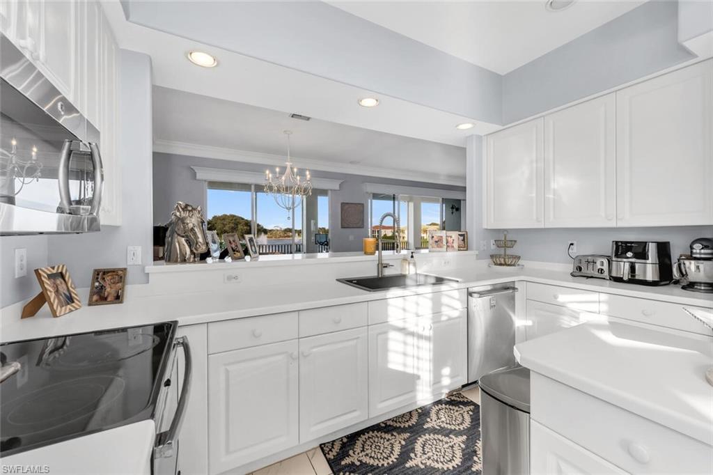 Welcome to Vintage Reserve at The Vineyards, a meticulously renovated top-floor coach home that boasts over 2,300 square feet of luminous living space. This spacious residence features three bedrooms and three fully equipped bathrooms. The soaring ceilings, ornate crown molding, and open-concept design create an inviting ambiance, complemented by a contemporary kitchen equipped with white cabinetry, stainless steel appliances, and sleek countertops. The expansive great room seamlessly transitions to a large screened lanai, offering breathtaking views of the tranquil preserve. The primary suite includes a walk-in closet and a spa-inspired bathroom with dual vanities. Additional amenities include a two-car garage. Nestled within the gated enclave of The Vineyards, residents enjoy access to scenic walking paths, tranquil lakes, and the exclusive opportunity to join Vineyards Country Club. This prestigious club offers two championship golf courses, tennis, pickleball, fitness center, spa, pools, and a diverse dining experience, including both casual and fine dining establishments. All these amenities are conveniently located within minutes of Naples’ renowned shopping, dining, and pristine white-sand beaches.
