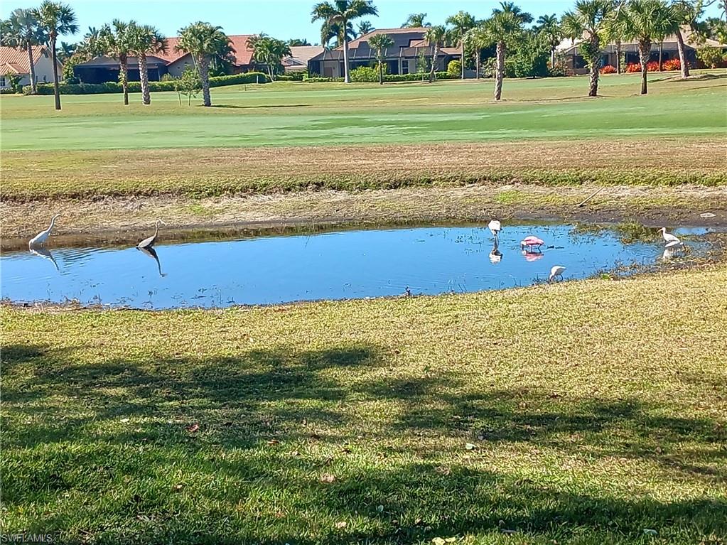 Step into this stunning, newly renovated, first-floor 2-bedroom, 2-bathroom coastal retreat, completely transformed with high-end finishes and thoughtful design. Flooded with natural light from its desirable western exposure, it offers serene pond and golf-course views within one of Bonita Springs’ most coveted communities. The updated kitchen features recessed lighting, a coffered ceiling, soft-close cabinetry, gleaming quartz countertops, an undermount sink with a new designer faucet, a stylish backsplash, under-cabinet LED lighting, and stainless-steel appliances. Both bathrooms have been upgraded with new vanities topped with quartz countertops, frameless glass shower doors, handheld showerheads, and elegant new fixtures. Porcelain tile flows seamlessly throughout the entire unit, complemented by fresh paint, new baseboards, brushed-nickel hardware, designer ceiling fans, and modern light fixtures, new impact windows and window treatments. Enjoy the Spanish Wells lifestyle with optional golf, tennis, bocce, pickleball, and clubhouse amenities just steps away. Perfect as a full-time residence, seasonal escape, or investment property, this move-in-ready home is offered turnkey. It includes a one-car garage, a dedicated golf cart garage, and an included golf cart—truly coastal living at its finest. Don’t miss this exceptional opportunity. Schedule your private showing today!