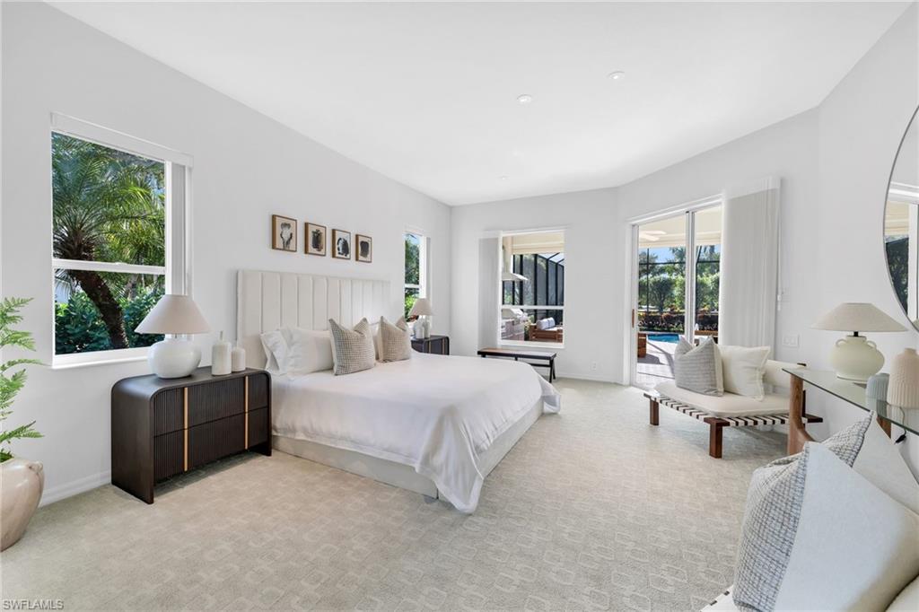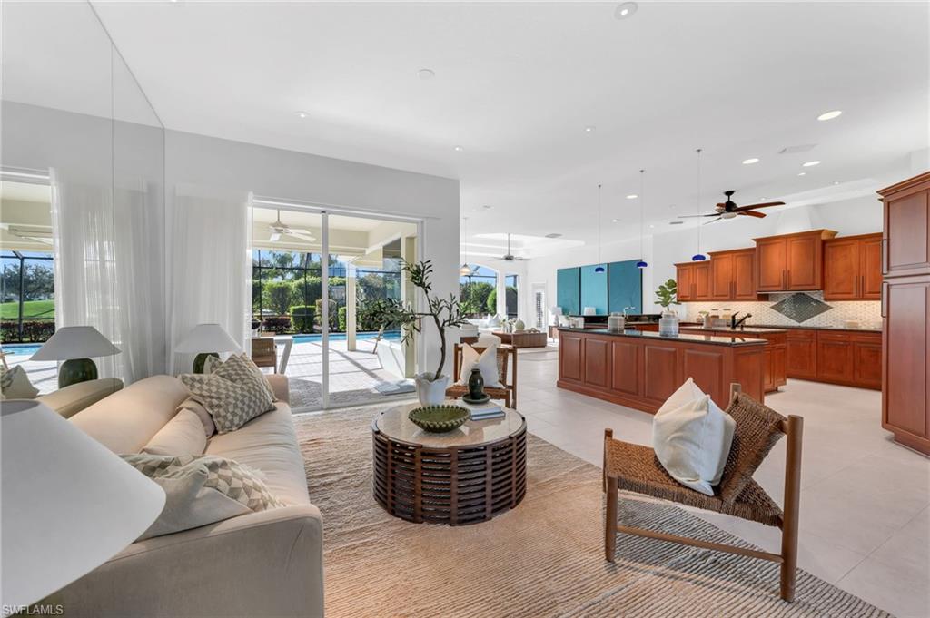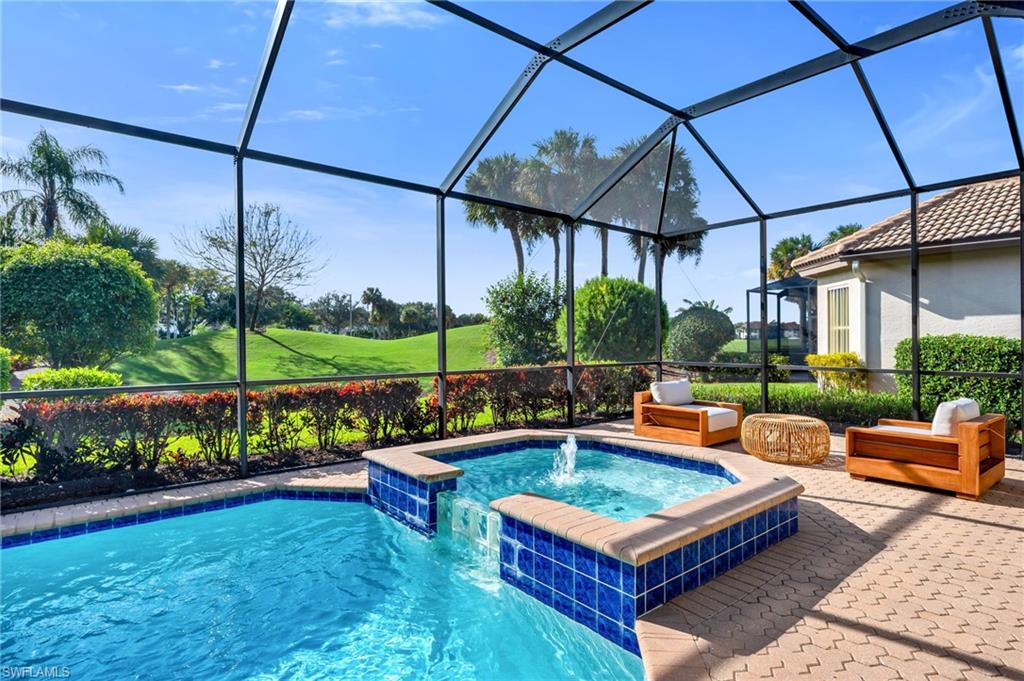 If you’ve been waiting for the right home in North Naples, a place that’s peaceful, beautifully cared for and ready for your next chapter, you will want to see this home. The custom Arthur Rutenberg Tradewinds III blends timeless design with noteworthy updates offering comfort, privacy and easy living in one of Naples’ most respected golf communities. From the moment you step inside, natural light and warm open spaces welcome you. There is a separate living room and great room, as well as a morning room with seamless corner window, all having direct access to lanai. The great room has south-facing oversize picture windows with golf course view. Kitchen has custom cabinetry, two islands, Italian marble, SS appliances, pull out pantry and remote skylight that lets in fresh air and west sunlight. The private primary suite commands the entire length of one side of the house, with oversized bath, room-size custom closet and a separate shoe closet. Primary bath is spa inspired, finished in Porcelanosa tile, French made vanities, free standing air jetted tub, LED mirrors and frameless shower. It is a soothing space that aligns with calming energy. Outdoor living area is just as impressive, with massive lanai, large pool and spa. Mature landscaping and new Calusa privacy hedge bring in Nature’s tranquility. Imagine quiet evenings outside, weekend gatherings or a morning swim before golf with friends. There is even an outdoor kitchen with custom cabinetry, TEC infrared grill, separate built in burner, custom SS venting, bar sink and granite counters. Recent updates to pool equipment (including new heater and pump), screened cage, and complete pool resurfacing allow headache-free enjoyment. Significant improvements make ownership easy, including 2025 roof, new water heaters, new gutters, fresh paint exterior & interior, updated irrigation system, hurricane-rated windows and motorized shutters. A 3.5 car garage with new epoxy flooring and full attic planking round out this exceptional home. The location within the Strand also adds appeal. The private back gate entrance offers quick access. Strand amenities include 27 holes of championship golf, tennis, pickleball, bocce and lawn croquet; as well as a fitness complex, multiple dining venues and a clubhouse with a full calendar of social activities. It is one of North Naples’ most desirable and inviting private clubs. If you are looking for a move in ready home with exceptional outdoor living, thoughtful improvements and a prime location near Publix, Target and Walmart, this home offers a comfortable, relaxed environment that exemplifies the Naples casual easy lifestyle.