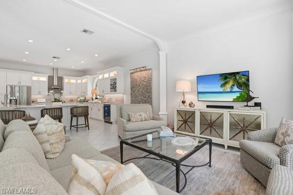 Discover an extraordinary blend of luxury, style, and comfort at 2026 Merlin Court—an elegantly transformed residence where thoughtful craftsmanship, modern upgrades, and effortless indoor–outdoor living come together to create a truly exceptional Naples home. Offering four bedrooms, three baths, and approximately 3,295 sq. ft. of beautifully designed living space, this residence sits within the highly desired Hawksridge community, just minutes from Naples’ pristine beaches, premier shopping, and renowned dining. At the heart of the home, the Cornerstone-renovated kitchen showcases custom soft-close cabinetry, quartz countertops, and premium stainless steel appliances—including a Café Chef Connect range, Fisher & Paykel dishwasher, and a Zephyr wine fridge. A light-filled dining area overlooks the sparkling pool, providing an inviting setting for relaxed coastal living. As you enter the home, you are welcomed into the impressive 28’X17’ formal living room, where soaring 13-foot ceilings and expansive windows frame the tranquil outdoor escape. A dramatic 16-foot pocket slider opens completely, merging the great room with the lanai and pool area for seamless indoor–outdoor enjoyment. Step outside to a travertine-tiled lanai featuring a screened, heated saltwater pool surrounded by lush privacy landscaping. The expansive 31’ × 19’ covered outdoor living area—complete with two ceiling fans—offers an elegant setting for year-round entertaining and quiet moments of retreat. The private primary suite includes two walk-in closets and a spa-inspired bathroom with dual vanities, a standalone tub, and a walk-in tiled shower with a rain shower head. Three additional bedrooms, located on the opposite wing of the home, are spacious and thoughtfully appointed. One guest bedroom features its own private entrance from the front of the house, offering added privacy and convenience for visiting guests or anyone seeking a quiet, separate space. Additional highlights include a two-car garage with built-in shelving, an electric vehicle charger, and a convenient attic elevator storage lift for effortless transport of belongings A home crafted for comfort, elegance, and connection to the outdoors, 2026 Merlin Court invites you to enjoy the best of the Naples lifestyle—sunlit days, breezy evenings, and a sense of coastal living that feels like everyday luxury.