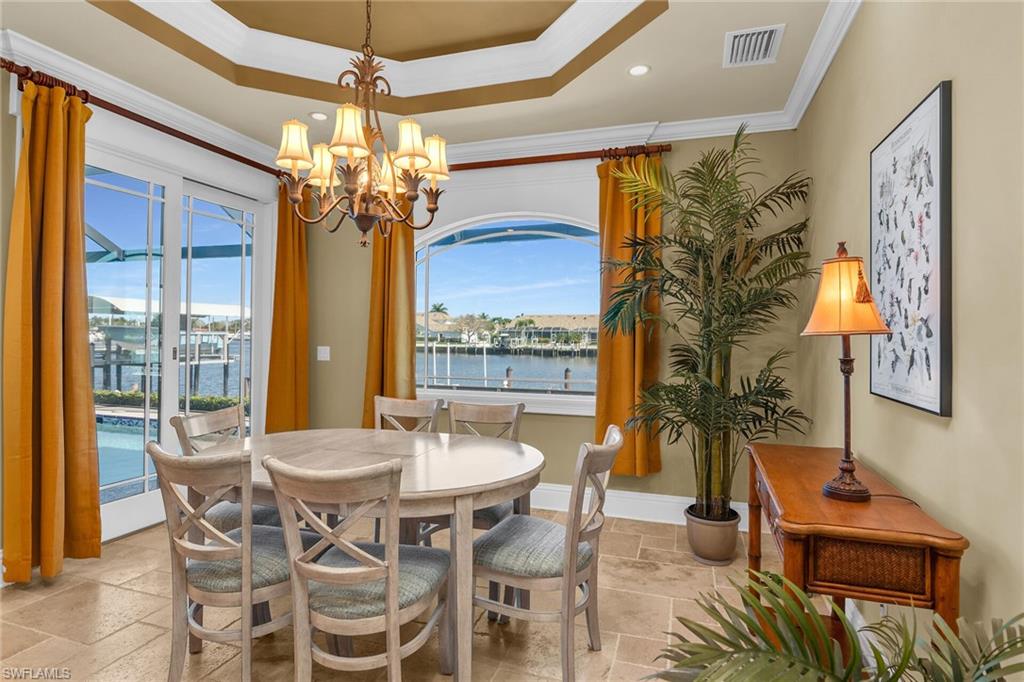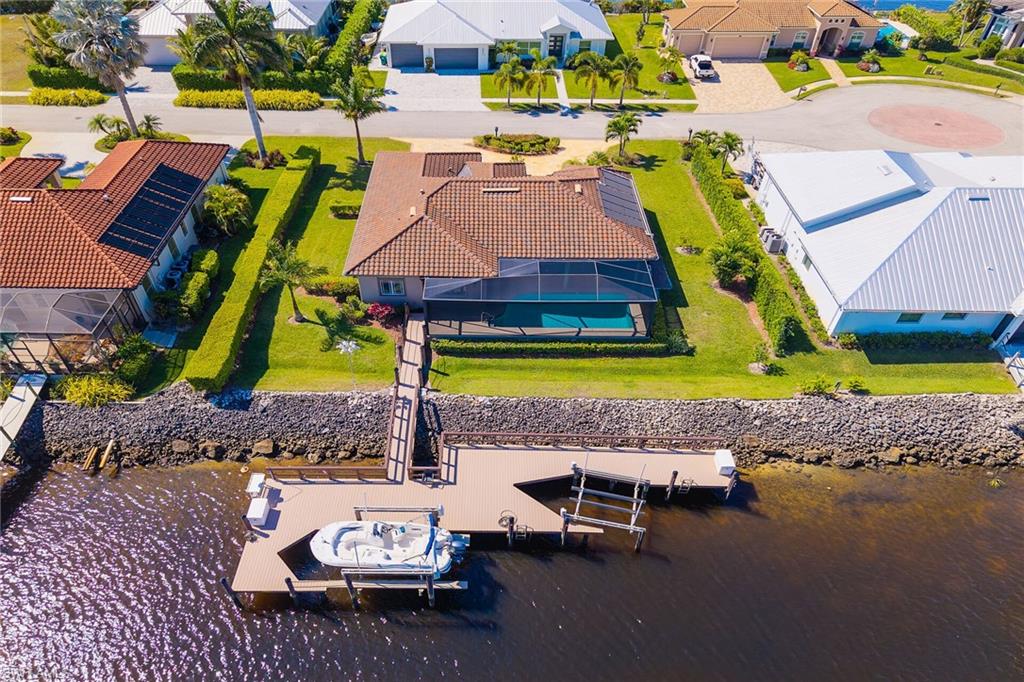 Live the Florida dream from sunrise to sunset at 171 Sunset Cay, located in the hidden gem of Port of the Islands. This exceptional waterfront home offers outstanding quality, value, and lifestyle, and serves as your gateway to the legendary Ten Thousand Islands and world-class fishing. With direct Gulf access via the Faka Union Canal, you will enjoy cruising through some of the most pristine backwaters in Southwest Florida. The magic begins the moment you step inside. Sweeping wide water views overlook the marina and intersecting canals, creating your own private slice of waterfront paradise. Outside, an expansive 80-foot American-made, maintenance-free dock awaits. Designed for the avid boater, it features a Captain’s Walk, two boat lifts rated at 10,000 lb and 7,500 lb, and two large fiberglass dock boxes. Cast a line from your backyard or head out for a sunset cruise, embracing the true essence of coastal living. Inside, this approximately 2,000 square foot residence features three spacious bedrooms and a gourmet chef’s kitchen with solid wood custom cabinetry, wood-paneled appliances, a 6-burner gas Dacor range, wine cooler, and a large granite breakfast bar that seats seven. Plantation shutters allow warm natural light to fill the home while maintaining privacy. Custom built-in cabinetry enhances every closet, providing elegant and efficient storage. Travertine tile flows throughout the main living areas, complemented by rich wood flooring in each bedroom. Tray ceilings with crown molding, designer lighting, and solid-core interior doors highlight the high-end craftsmanship found throughout. The two-car garage is equally impressive with epoxy floors, built-in workspaces, and storage accessories that keep tools and recreational gear organized. Outdoors, lush tropical landscaping and a half-moon driveway create striking curb appeal and offer ample guest parking. The heated pool, equipped with both solar and electric systems, provides a serene retreat for relaxation and fun. Hurricane impact doors and windows, roll-down shutters, and a 250-gallon buried propane tank offer peace of mind during storm season. This stunning home is being sold furnished, making your transition to paradise effortless. Discover why Port of the Islands is one of Naples’ best-kept secrets and experience waterfront living at its finest.
