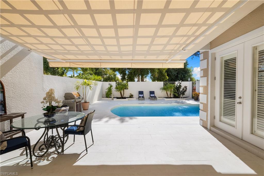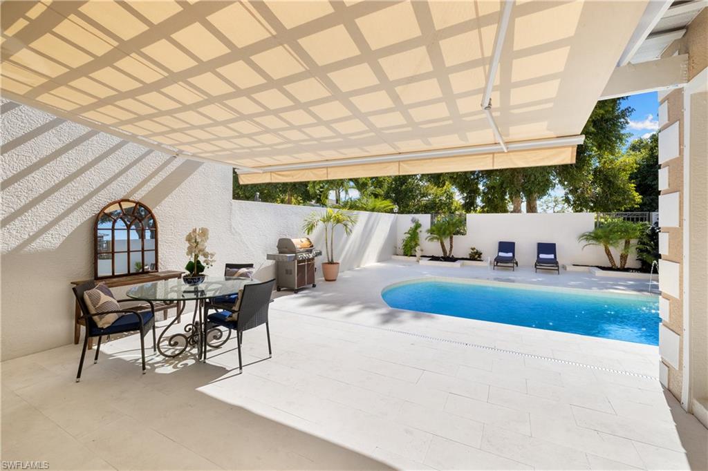 Experience refined Villa Pienza living in this elegant end-unit residence west of 41, where sun-drenched interiors, modern finishes, and the ease of maintenance-free living blend seamlessly in a home that lives like a private single-family retreat. Inside, natural light fills the spacious great room and flows into a bright modern kitchen appointed with an island, butler’s pantry with dry bar and wine fridge, and an inviting dining area ideal for both relaxed gatherings and elevated entertaining. Hardwood floors and timeless design elements create a warm, sophisticated ambiance throughout. The first-floor primary suite provides a peaceful sanctuary with ample closet space and a serene, spa-inspired bath. Upstairs, two generously sized guest bedrooms and a versatile den offer an ideal layout for visitors, work, or quiet leisure, while two private balconies welcome fresh breezes and soft Naples light. Outside, a private backyard oasis awaits—lush landscaping, a trellised lanai, awning, south-facing pool, and an open deck designed for sun-soaked afternoons and intimate evenings. Situated in the highly desirable west-of-41 corridor and within the X-500 flood zone, this pet-friendly villa combines the freedom of maintenance-free living with the comfort, privacy, and scale of a single-family home. Clam Pass and Seagate Beach are just moments away, while Waterside Shops, Venetian Village, and downtown Naples offer premier shopping and dining within easy reach. Light, bright, and effortlessly elegant—this villa embodies the best of luxury living in Naples.