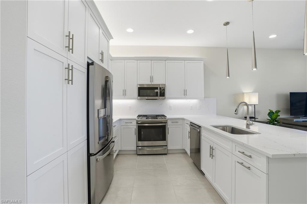 Discover Unmatched 55+ Luxury at Valencia Trails in this Barely Lived-In Gem! Built by GL Homes in 2024, the Flamingo floorplan is hardly one year old yet! Nestled in the best location inside Valencia Trails – perfectly positioned closer to the brand-new Vanderbilt Beach Road entrance for effortless comings and goings, and far away from any road noise on the serene side of the community. The charming Flamingo floor plan offers 2 bedrooms plus a versatile den, 2 full baths, and 1,772 sq ft of thoughtfully designed, open-concept living. Step inside to discover all the extras to this new construction: new custom blinds, stunning decorator lighting, fresh satin-finish interior paint, and a pristine epoxy garage floor. Wake up to peaceful, scenic lake and preserve views from your private backyard oasis and enjoy sunsets and nature’s tranquility from the screened in lanai. This is Naples’ newest 55+ enclave where resort-style amenities meet low-maintenance luxury. Priced to sell and move-in ready – You can start enjoying all the fabulous Trails amenities this season! Your slice of the Naples dream awaits at 12391 Purple Ficus Way.