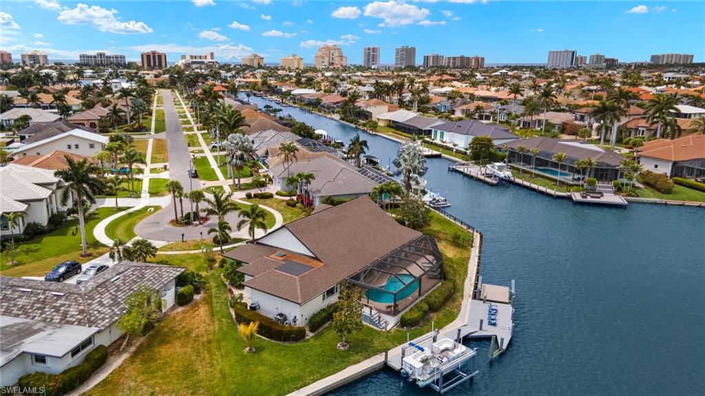 Beautifully updated, modern three-bedroom, three-bath residence with a bright open floor plan and wide water views of the interconnecting waterway. This Cul-de-sac home boasts 161' of seawall and seamless indoor-outdoor living spaces that flow, integrating the unique beauty of Marco Island, making it the perfect setting for both relaxation and entertaining. The newly added dock comes with a 16,000-pound lift and quick access to the Gulf. Whether you're fishing, kayaking, or simply enjoying the views, this tip lot is ideally situated on the south end of Marco. This home has undergone extensive upgrades, ensuring modern comfort and efficiency, with an Island vibe. Recent enhancements include a new pool, pool heater/filtration system, new A/C, hot water heater, garage door, hurricane screens, and eco-friendly solar panels. The home's interior is stylish throughout, with a warm and inviting coastal atmosphere. Additionally, this property comes with a rental program if the new owners are seeking an income property.