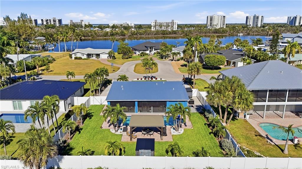 Discover the perfect blend of privacy, comfort, and island living in this beautifully remodeled single-family home, ideally situated in the quiet Laguna Shores community on the sought-after south end of Fort Myers Beach. This fully permitted 2-bedroom, 2-bath residence has been thoughtfully upgraded inside and out, offering peace of mind and effortless Florida living. Enjoy the convenience of a ground-level ranch layout featuring an open-concept design that flows seamlessly from the living area to the expansive screened-in lanai. The home is equipped with comprehensive storm protection, including shutters, Garrison flood panels, impact-rated doors and windows, an elevated pool system, and a durable metal roof. An additional air-conditioned flex room provides space for a home office, guest overflow, or fitness area. Step outside to a true backyard oasis—complete with a large pool, sun shelf, and jacuzzi, all surrounded by native landscaping and a privacy fence for serene outdoor living. A charming gazebo and spacious yard create the perfect setting for entertaining or relaxing in your personal retreat. Laguna Shores residents enjoy two deeded beach accesses, with Santini Plaza just a short stroll away, offering boutique shopping, a weekly farmers market, and fine and casual dining options. With easy access to Bonita Springs, Naples, and Southwest Florida International Airport, this property offers an exceptional opportunity to experience the best of coastal living on Fort Myers Beach.