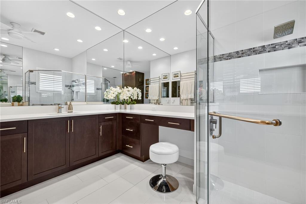 If you’ve been waiting for a lakefront Chandon with a pool, spa, and every imaginable upgrade — this is the one. Designed by an experienced homebuilder, this residence showcases exceptional finishes throughout. The great room features a Venetian-finish accent wall with lighted floating shelves, and zero-corner sliders that open the entire space to the lanai for seamless indoor–outdoor living. Outside, enjoy a heated saltwater pool with sun shelf, in-ground spa, extensive landscaping, and a curated butterfly garden that creates your own private retreat. Roll-down hurricane screens add convenience and protection. The designer kitchen offers a double wall convection oven and microwave, induction cooktop with chimney hood, pull-out pantry drawers, and an island that seats seven. The primary suite includes a custom closet with locking drawers, upgraded post-closing carpet and padding, custom sheer blackout shades, floor-to-ceiling shower tile, ceiling-height mirrors, and a heated towel rack. A second ensuite bedroom includes a walk-in closet, tile flooring, and plantation shutters. The third bedroom enjoys a semi-private bath via an added hallway door plus upgraded post-closing carpet and padding, and plantation shutters. The home office features a contemporary inside-mounted barn door, walk-in closet, built-ins with lighted shelving, and lockable storage. The laundry room includes upgraded LG appliances, abundant cabinetry, and a utility sink. The garage impresses with epoxy flooring, a side door, storage cabinets, and a wall-mounted organizing system. Additional upgrades include a whole-house generator and water filtration system, crown molding, 24" porcelain tile, a 75-gallon gas water heater, inside the home walk-in storage room with electricity, and a hurricane screen at the front door. This exceptional home offers unmatched quality and comfort, plus all the amenities of Valencia Bonita: HOA fees now including Xfinity cable/internet, no CDD, natural gas, and a 45,000 sq. ft. Clubhouse + Lifestyle Complex with 10 acres of amenities. Enjoy tennis, pickleball, bocce, multiple pools (lap/resistance/kids/resort), fitness center, indoor/outdoor dining, fire pits, cabanas, full-service spa, nail salon, pottery studio, and over 50+ social clubs. A full-time Lifestyle Director and top-notch fitness program offer activities for every interest. Move in and live the ultimate Florida dream — just 20 minutes to the beach and less than 30 minutes to RSW!