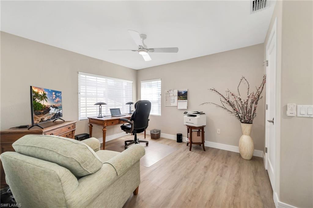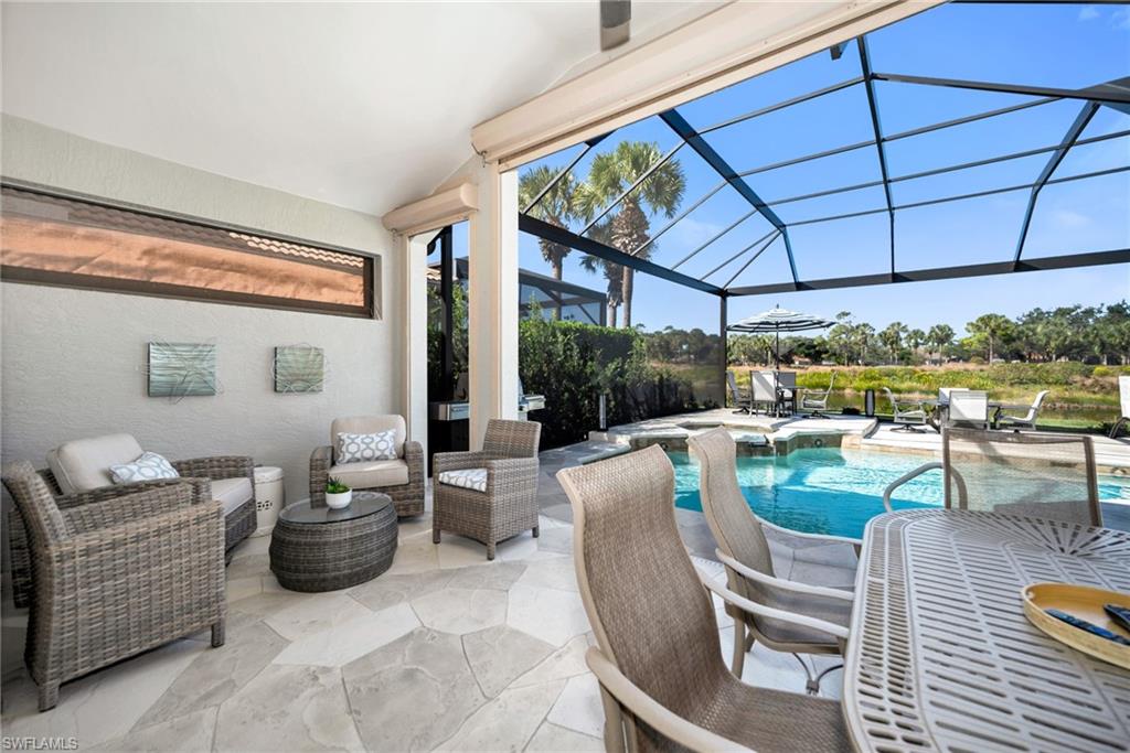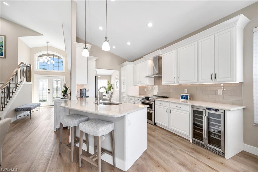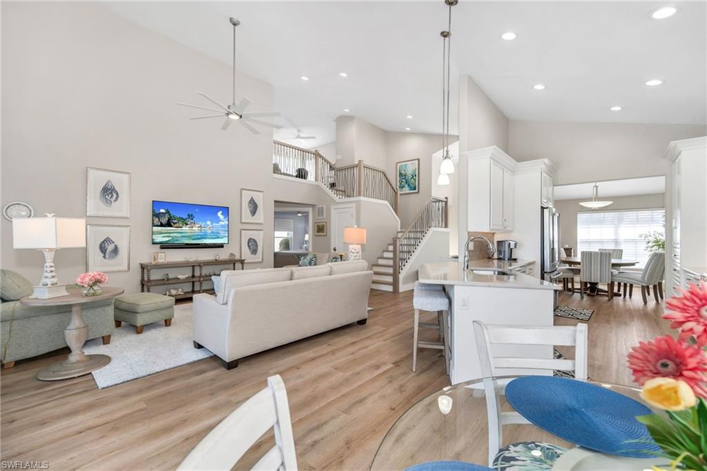 Welcome to Copperleaf at the Brooks! SW Florida’s lowest-density, premier bundled golf community! Gorgeous, tranquil views await you from the lanai of this beautifully appointed single-family home. The wow factor is significant and the upgrades plentiful in this 3 bedroom/3 (full) bath home. The open kitchen has new quartz countertops with custom tile backsplash, newer stainless steel appliances, soft-close cupboards, custom pantry, custom wine cooler, a quaint breakfast nook and large opening to formal dining room. The kitchen opens to a large great room with vaulted ceilings with added lighting enhancing the spaciousness of the living area. The primary bath was fully remodeled (2021) and boasts custom cabinetry, motion base-board lighting and custom tile work. The primary (walk-in) closet was completely redesigned in 2021. ALL interior doors were replaced with solid doors and new castings. The guest bath was completely remodeled (2021). The laundry room was completely remodeled with new washer/dryer tower, custom cabinetry and sink. (2021) The home features CoreTec Luxury Vinyl flooring throughout, including new baseboards. (2021/2022) The beautiful staircase (to the second-floor guest bedroom, bath and loft) features new white oak flooring, balusters and rail. The front entryway boasts gorgeous custom designed hurricane rated doors. (2021) The spacious lanai offers plenty of under air seating and overlooks a lovely water feature and gorgeous golf-course view. It was expanded 400-feet to allow for additional seating and enjoyment, (2023) and the new lanai cage (2023) features a panoramic screen that further enhances the gorgeous views. Other upgrades and improvements include new window treatments throughout, new hurricane shutters and shades on windows and front doors, new furnace and HVAC (2021), new roof (2023) and new hot water tank (2025). Copperleaf boasts a newly renovated state-of-the-art Clubhouse and outdoor dining, which provide fabulous options for dining or refreshments after golf on the Championship course, tennis on the Har-tru courts, and/or Bocce Ball. The pool, hot tub and state-of-the-art fitness center are also available to all residents. Copperleaf (Brooks) residents enjoy the option of membership at The Commons Club, which offers access to a private beach club, a health and fitness center, a spa, an enrichment center, and The Rookery Bar & Grill, a private waterfront restaurant. This home offers unparalleled convenience with nearby Coconut Point Mall, Miromar Outlets, Lee Health Medical Center, RSW and a variety of dining and shopping options in Estero, Fort Myers, and Naples. Schedule your showing today! Don’t miss your chance to experience the best of Southwest Florida living!